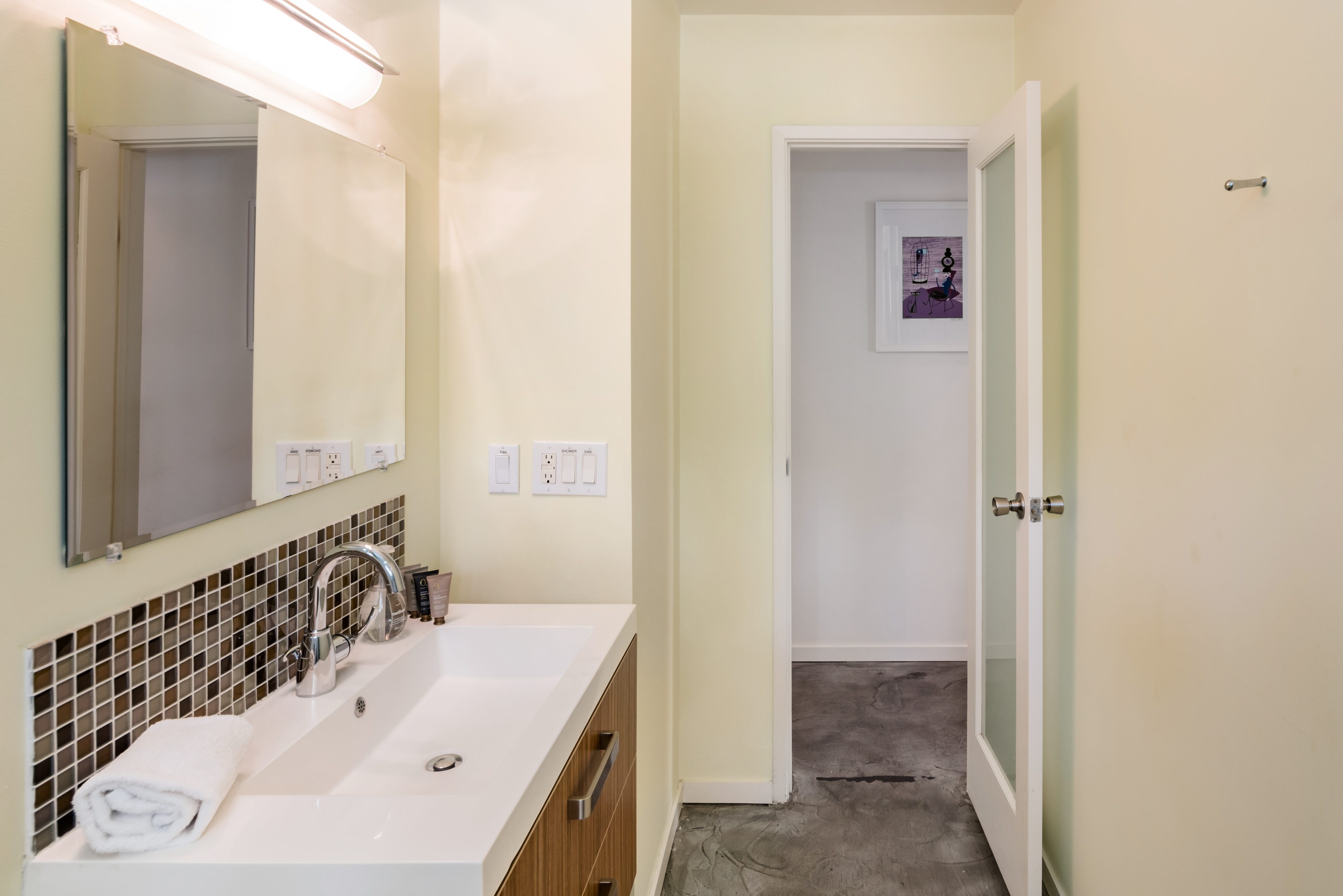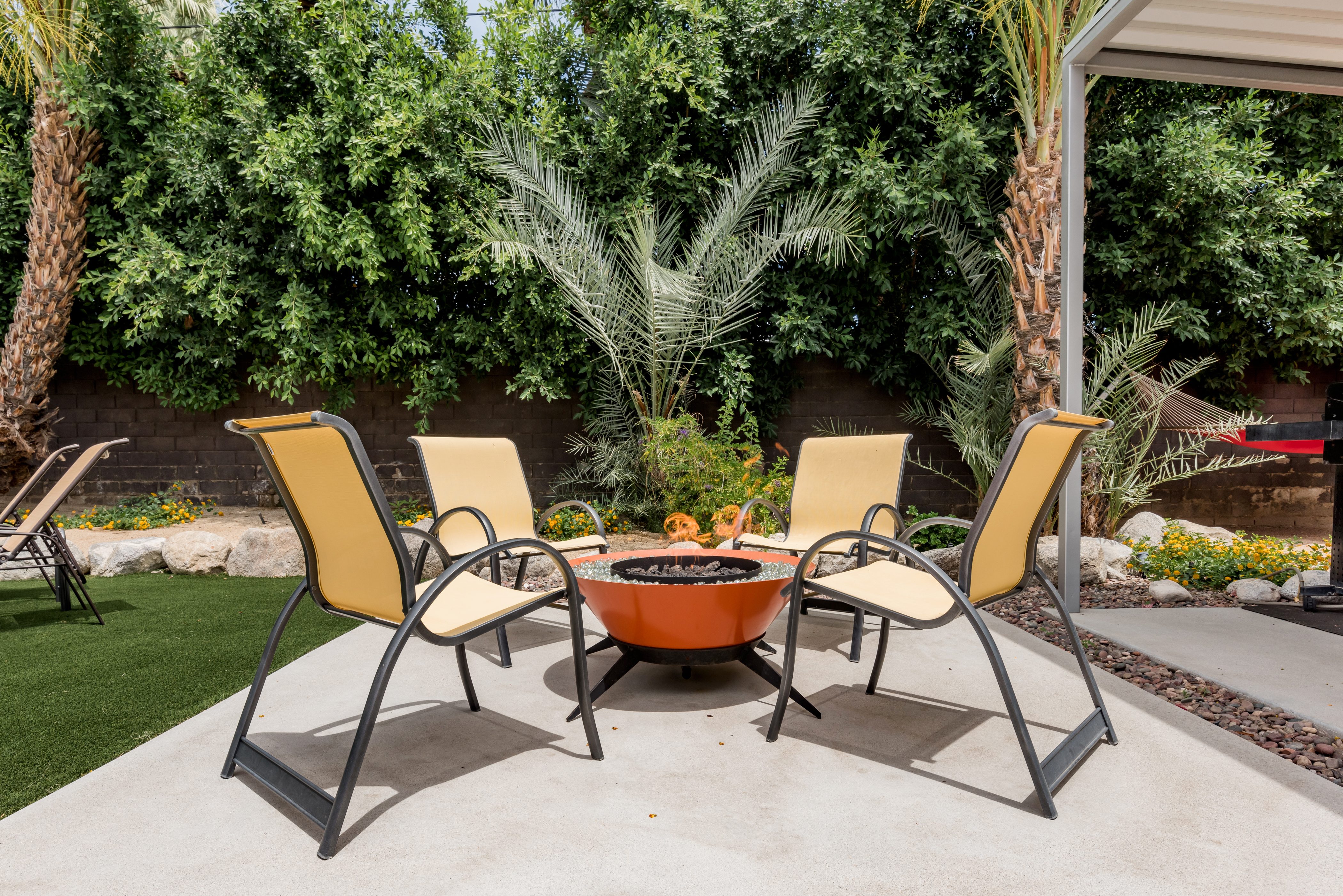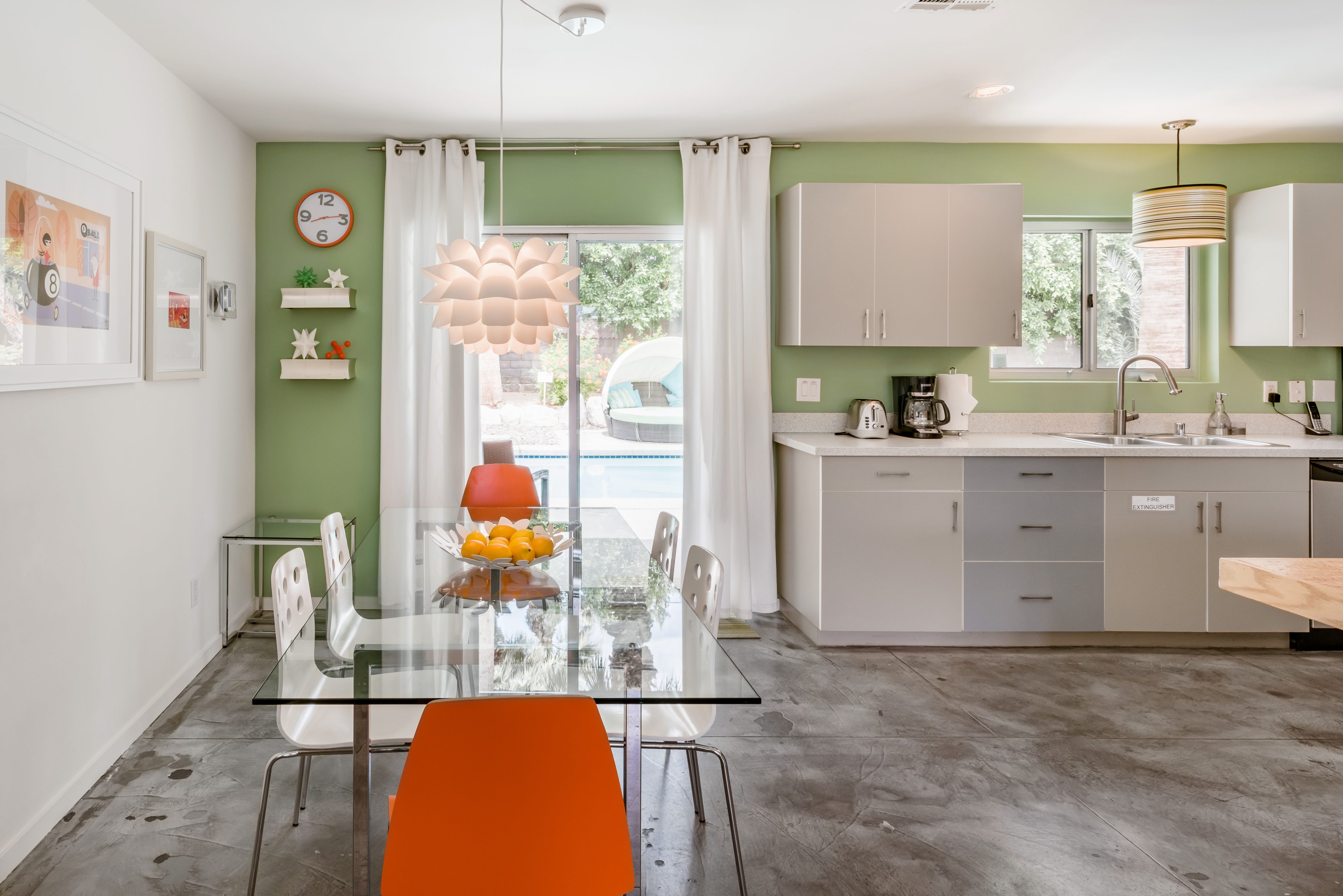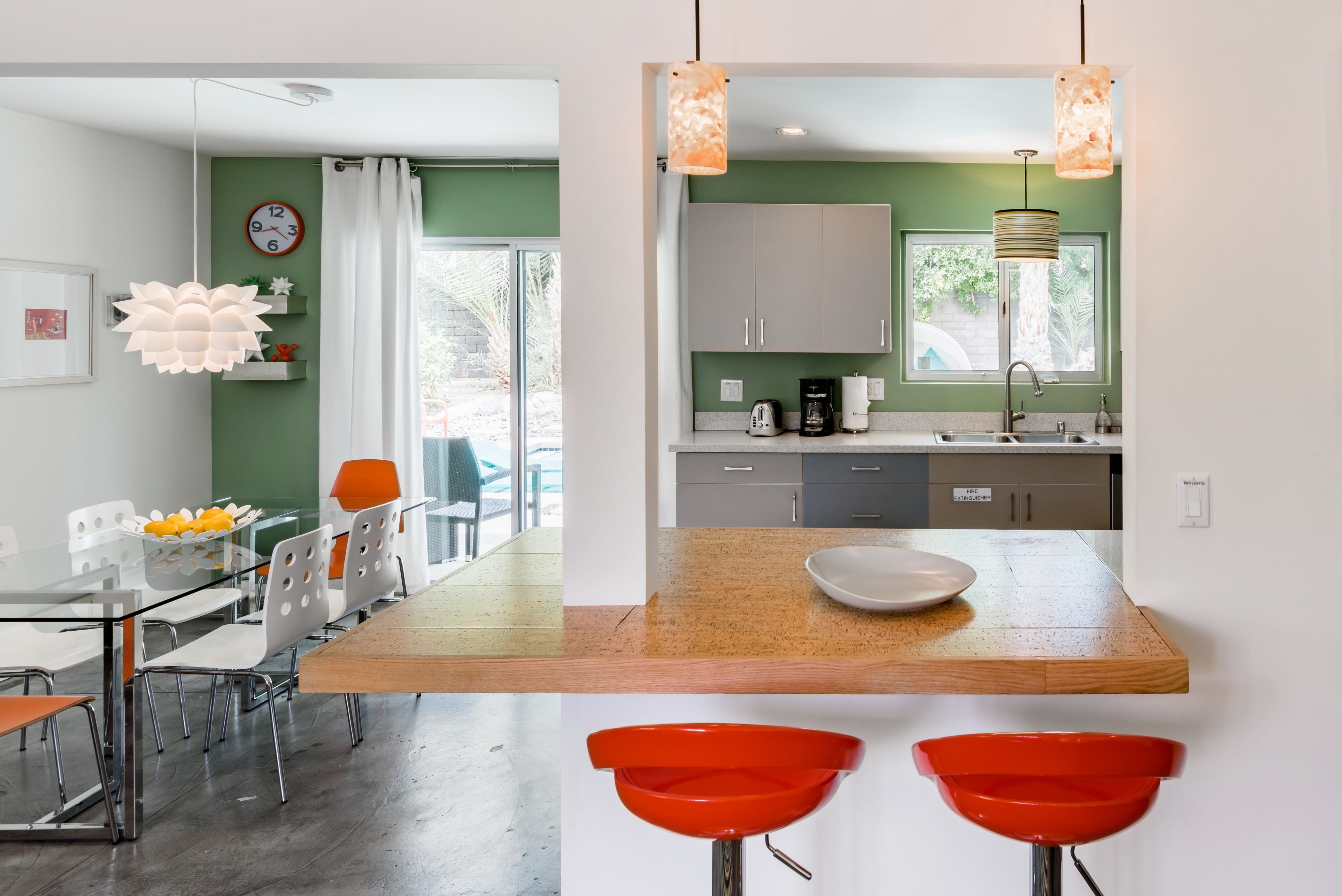 P.S. City ID #1174 Primary renter must be at least 25 years old Top-to-bottom mid-mod remodel. All about outdoors w/privacy fenced rear yard. Gorgeous mountain views w/private pool w/waterfall feature, hot tub, sun loungers, covered alfresco dining space w/grill, fire feature and boccie. Even a hammock for mid-day nap! Indoors, find a bright and cheerful open layout w/fun colors and relaxed vibe. Kitchen offers SS appliances and quartz counters. MBR suite w/king bed, private bath and access to pool area. Guest bedroom w/king bed, hall bath access. Close to Ruth Hardy Park, Palm Canyon Dr.Amenities