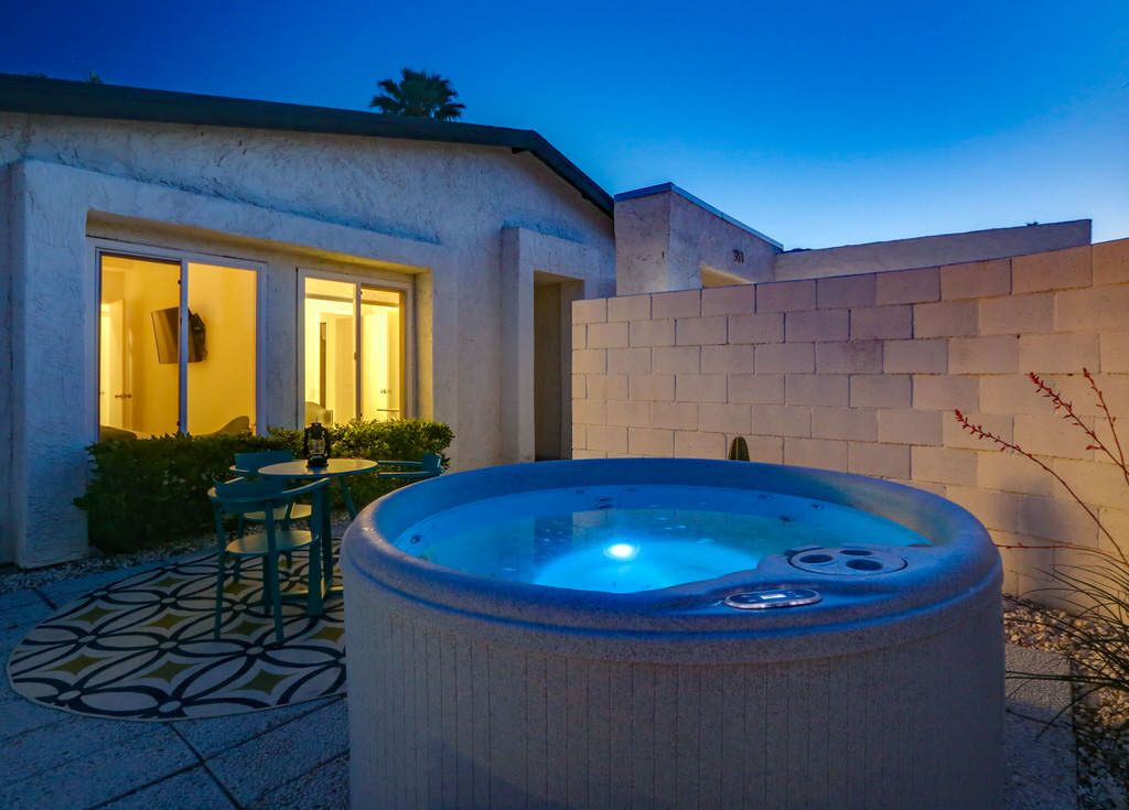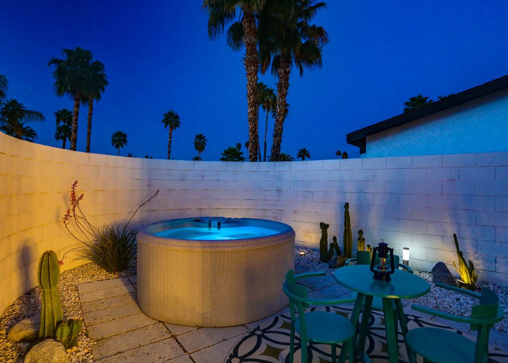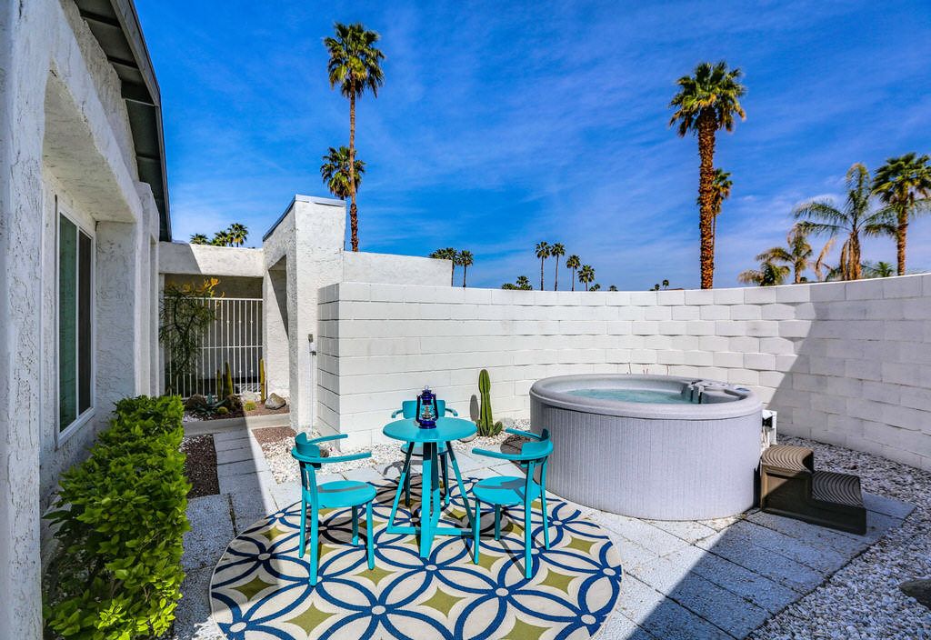 Enjoy the private pool in the fenced backyard while enjoying refreshing beverages with sweeping views of the San Jacinto Mountains. The outdoor oasis is complete with a grill, al fresco dining, and outdoor living room furniture and chaise lounges. In the front private courtyard you will find a private and inviting spa.