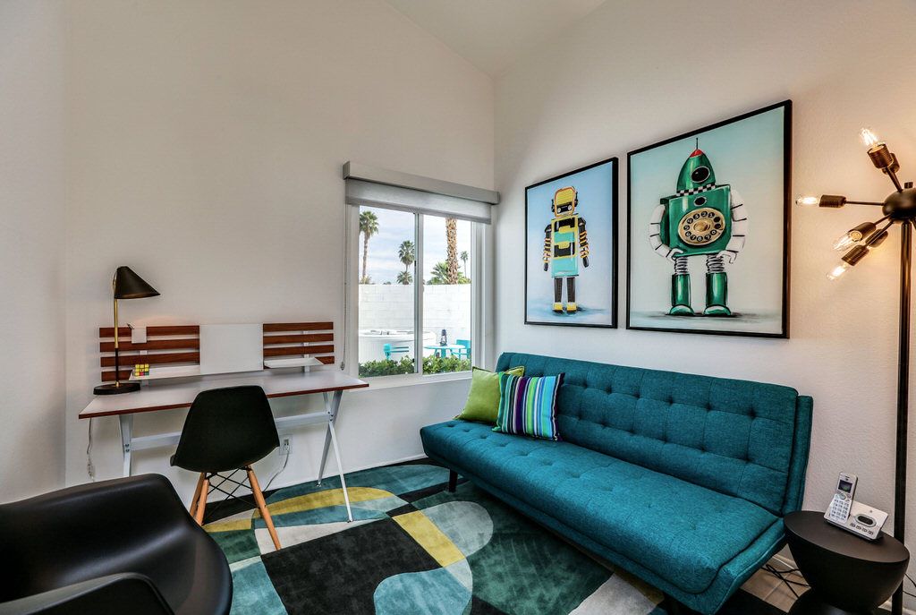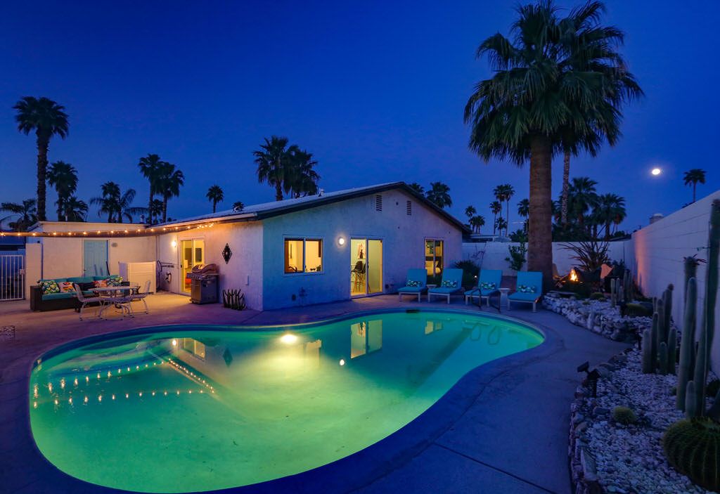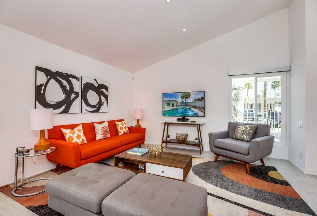 Located on a quiet street on the South East Palm Springs find this contemporary gem, 2BR/2BA single-story home. The modern remodel features mid-century inspired furniture and artwork throughout.
