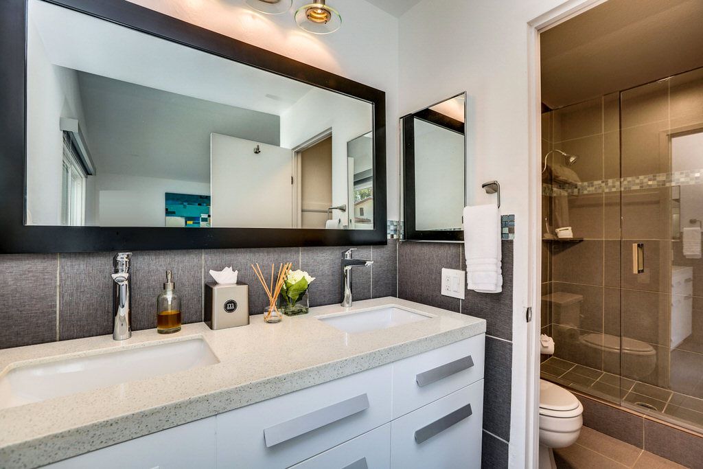 The second bedroom is outfitted with a queen-size bed and a large closet. The second bathroom includes another walk-in shower.