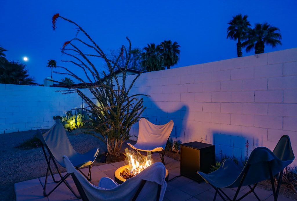 As evening falls, fire up the propane grill for a home-style cookout. Or sit by the outdoor fire feature.