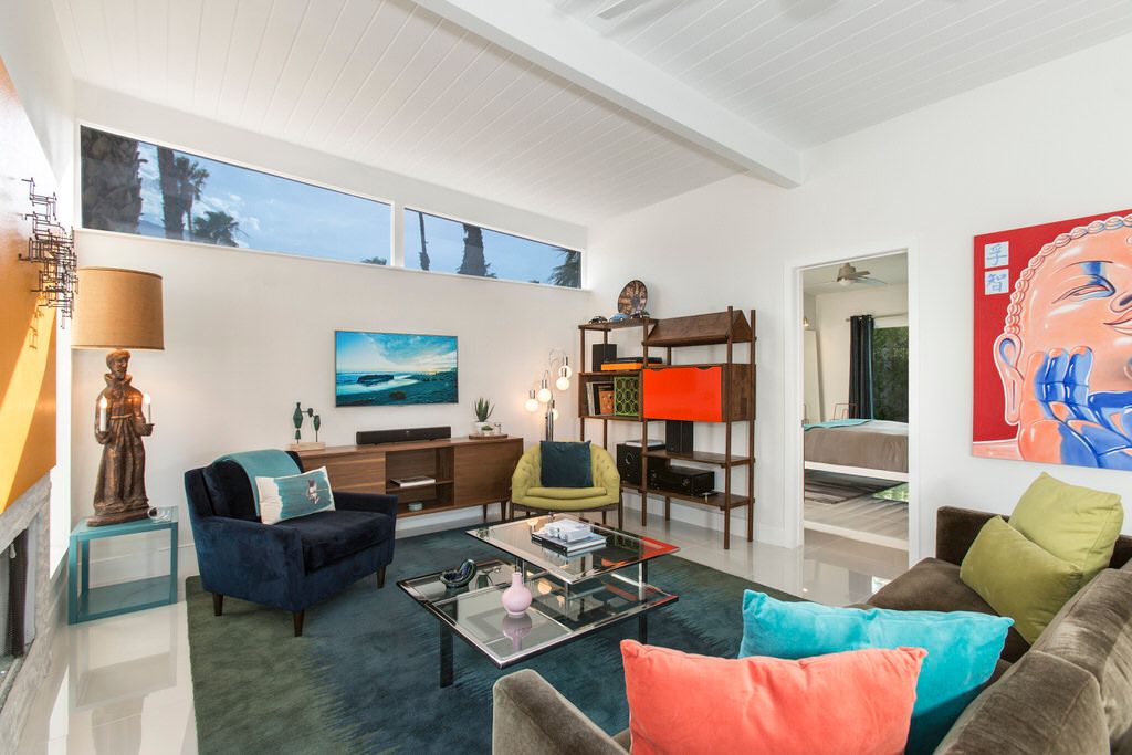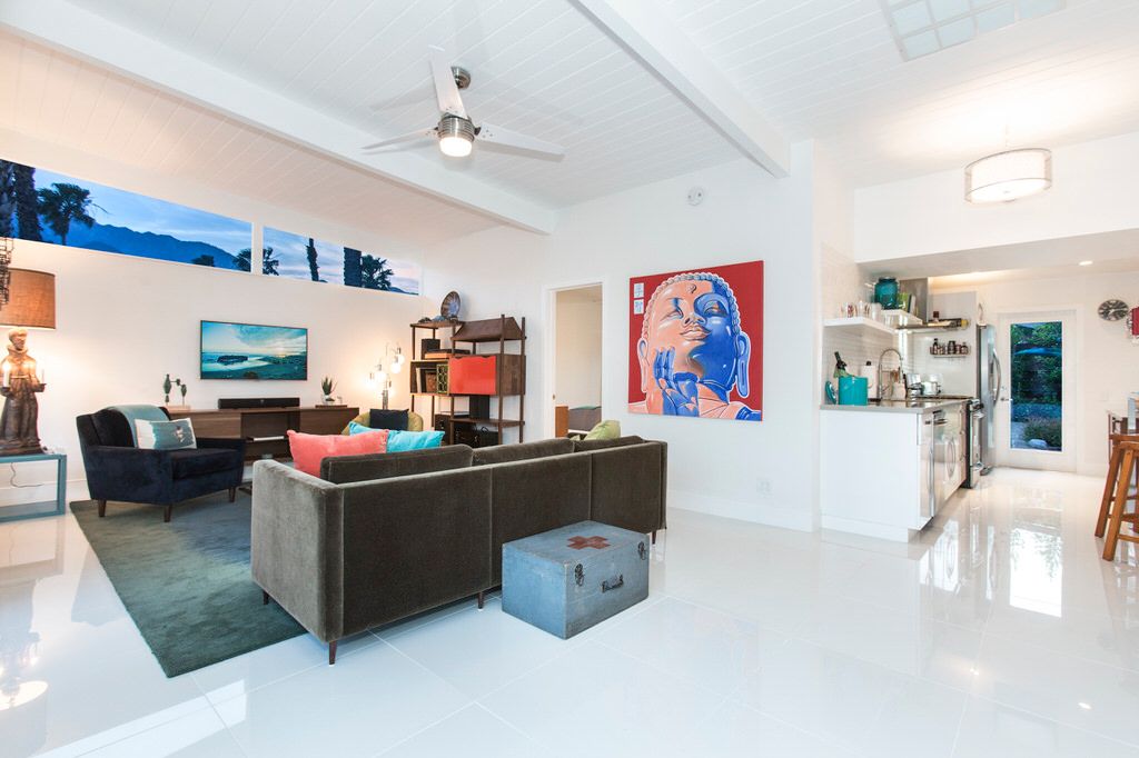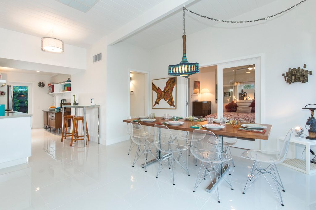 At heart a true 1959 Meiselman, Camp 1959 features 1,500 square feet of indoor living space. Signature Meiselman details can be seen through the home, including the clerestory windows, abundant glass facing the pool, tongue and groove ceilings and Galley Kitchen layout.