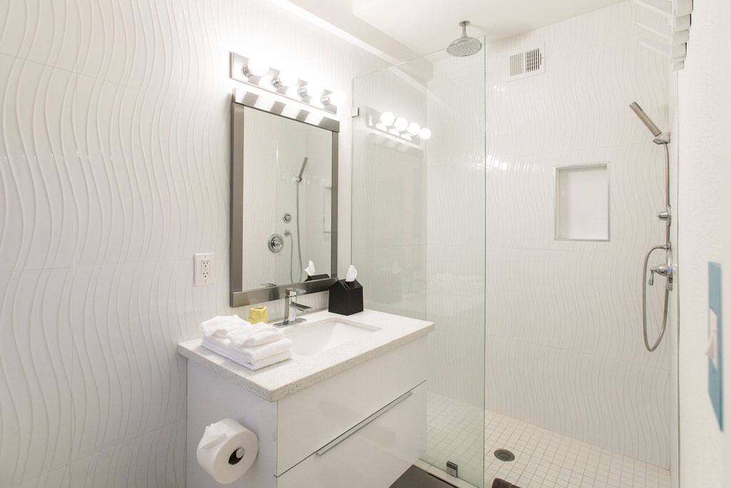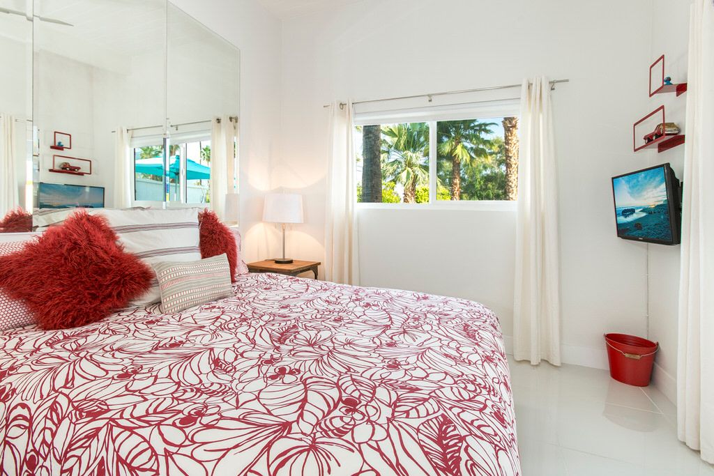 The master suite features a California King sized bed, HDTV and en-suite bath with single vanity and walk-in tile/glass shower. The Master Suite also features a semi-private patio with gas fireplace. The first and second guest quarters each feature a King sized beds, HDTV, and share a common hall bathroom with single vanity and walk-in tile/glass shower.