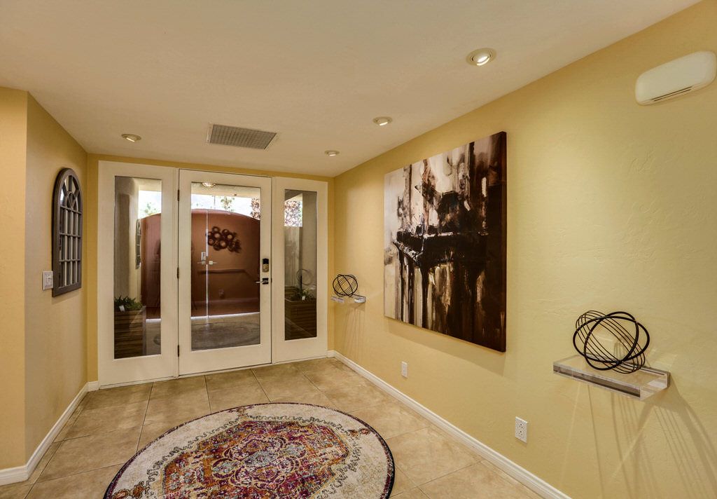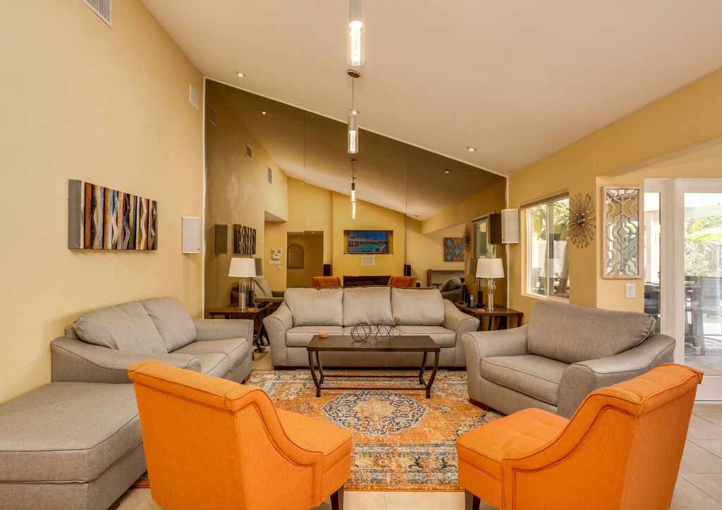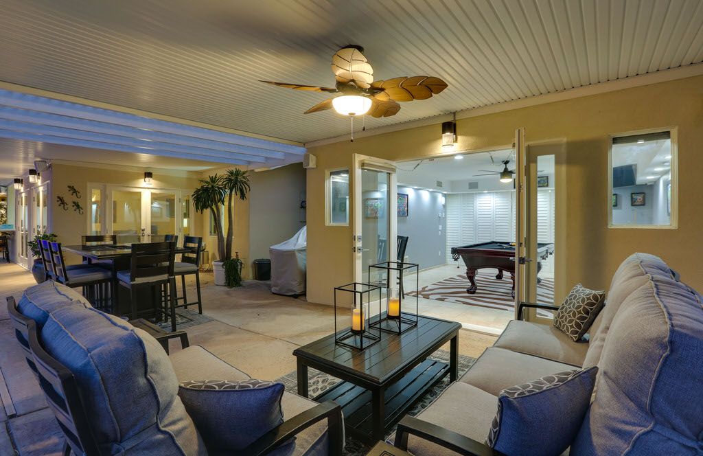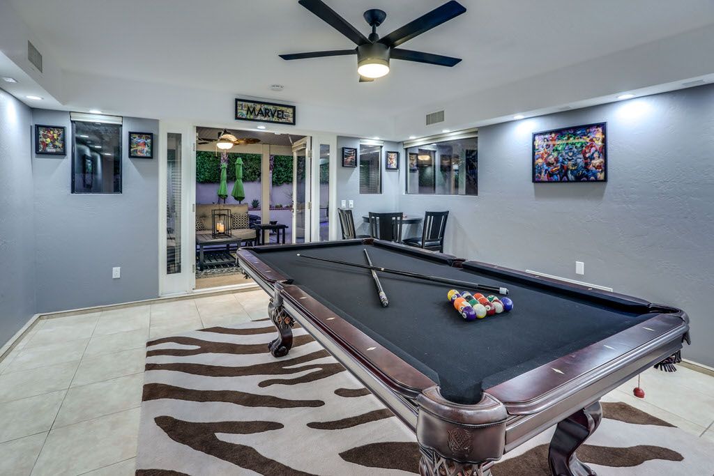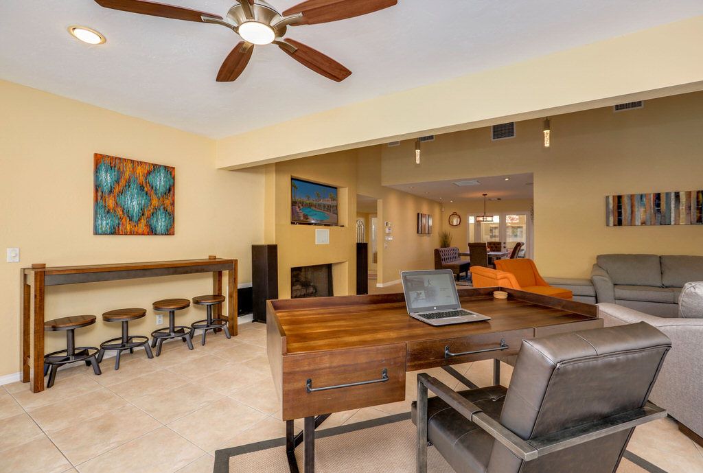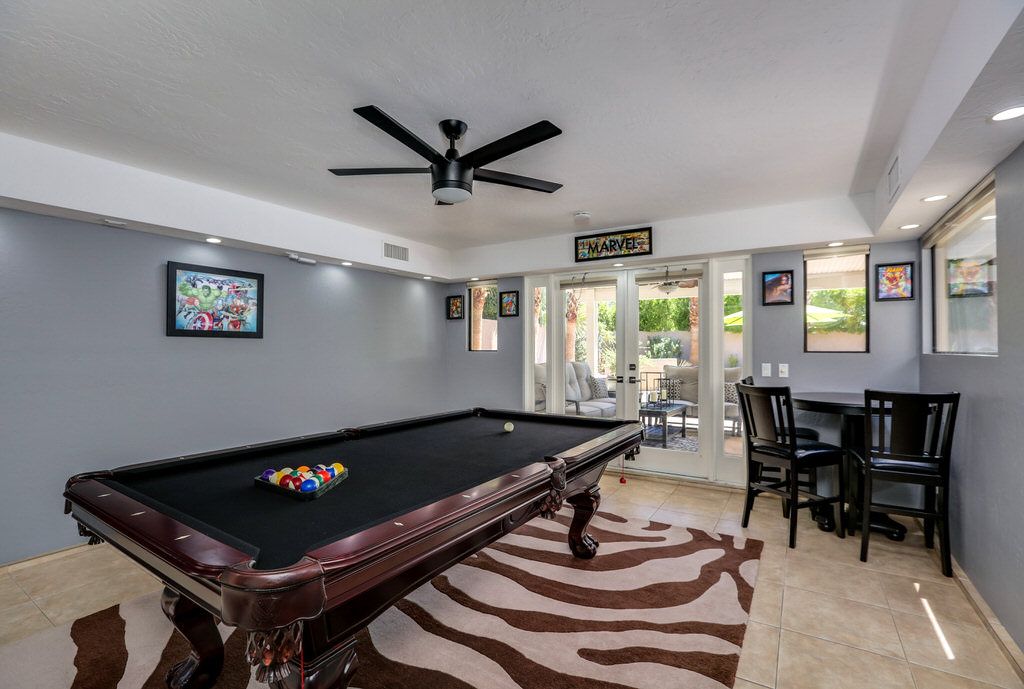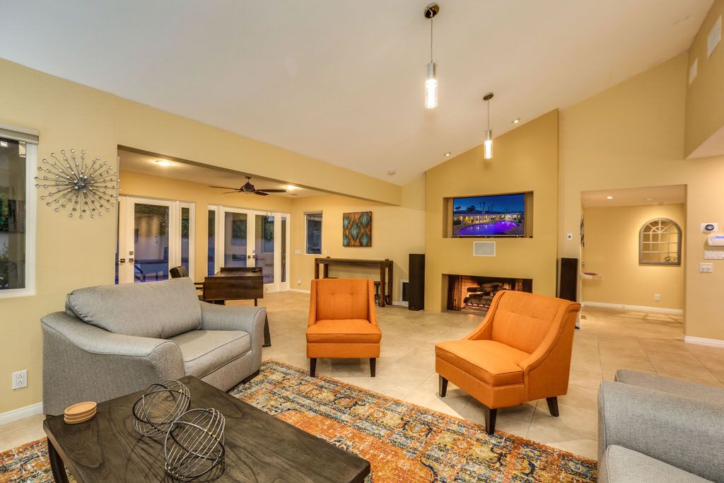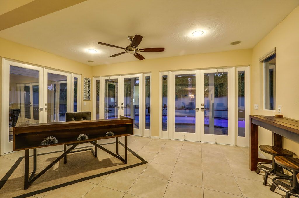 In the living room you'll find comfortable and abundant seating that faces the brand new 55 inch Samsung QLED 4K Smart UHD TV with surround sound, Bose SoundLink Bluetooth Speaker, and a cozy fireplace with French door access to the pool and outdoor living space. Adjacent to the living area is the perfect workspace and game room including an 8ft custom pool table.