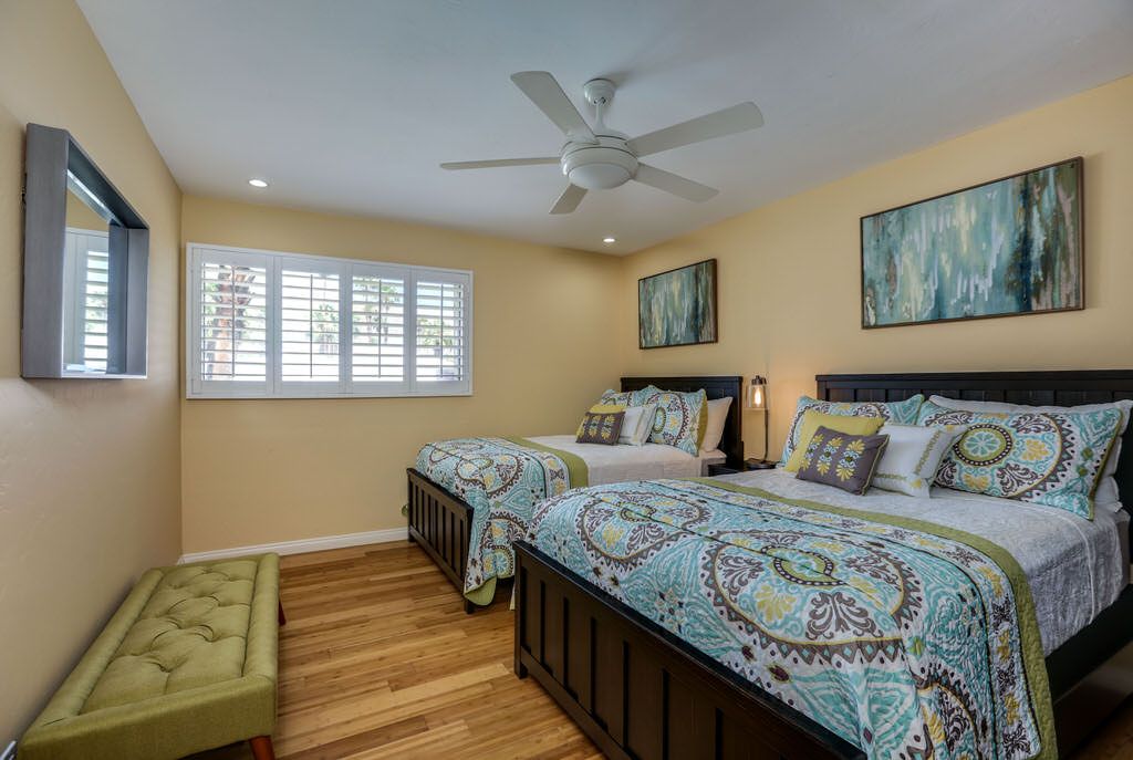 This beautifully decorated 4 bedroom, 3 bath Palm Springs vacation rental home is Resort-Style living at its best. Clean and comfortable with abundant room inside and out to relax and unwind or entertain friends and family. This stylish home was remodeled and newly furnished in 2018.
