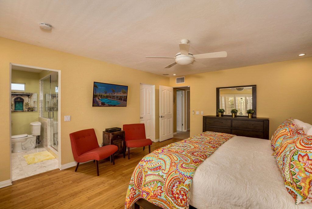 The main living quarters features 3 spacious bedrooms with access to the outside pool area. The one bedroom, one bath private casita has everything needed for an enjoyable stay including, mini-fridge, microwave, and Keurig.