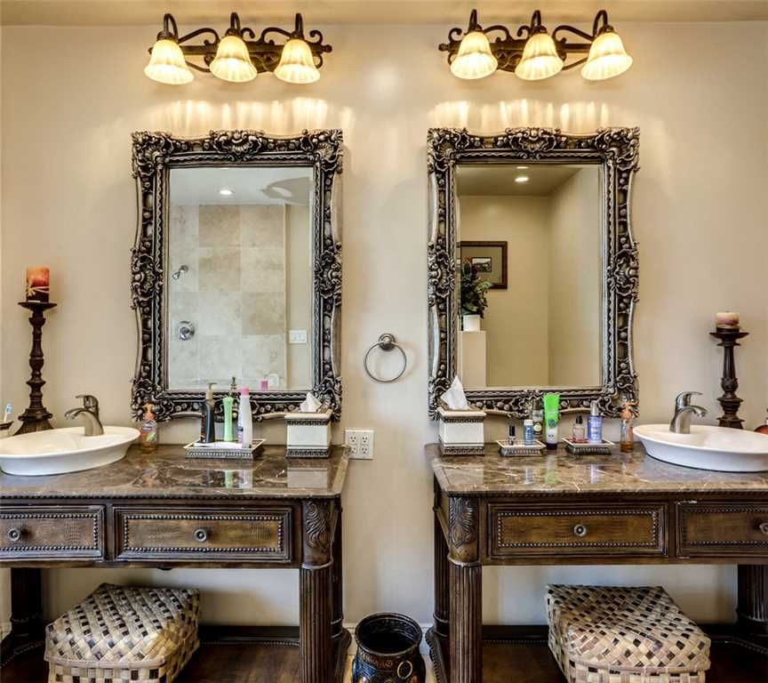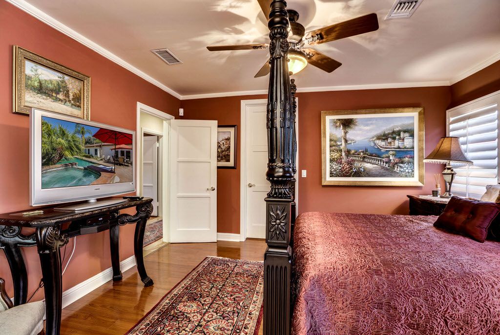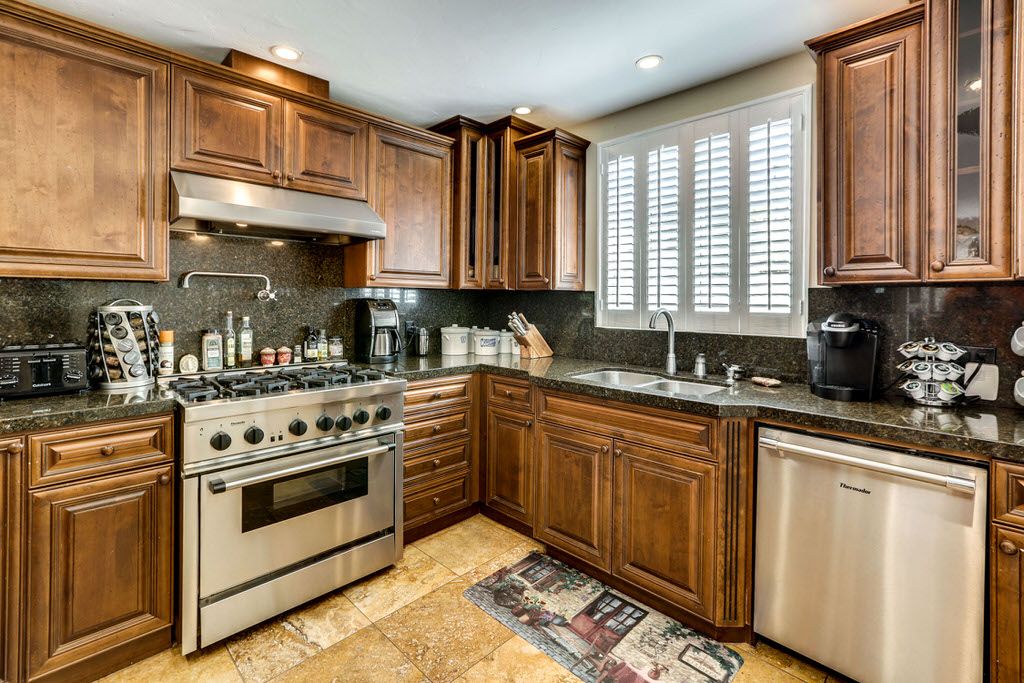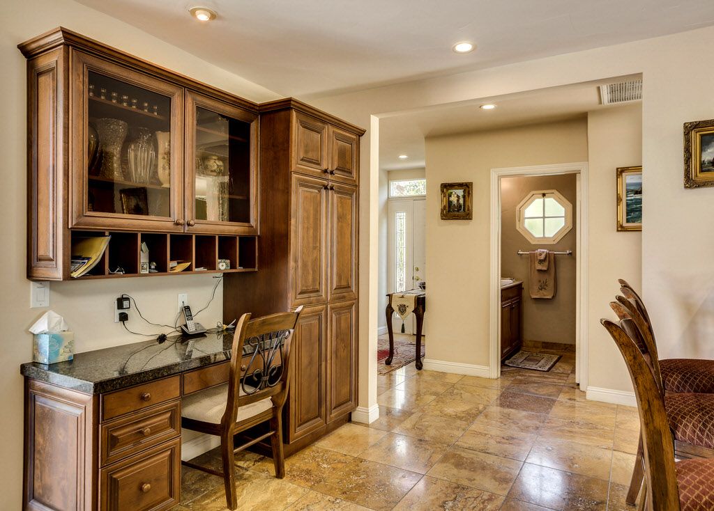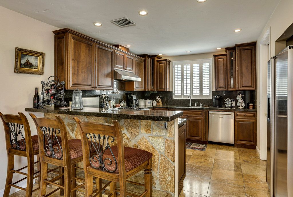 This Palm Springs home features a gourmet kitchen with microwave, convection and conventional oven, six-burner stove, dishwasher, ice maker, pot filler and large sink.