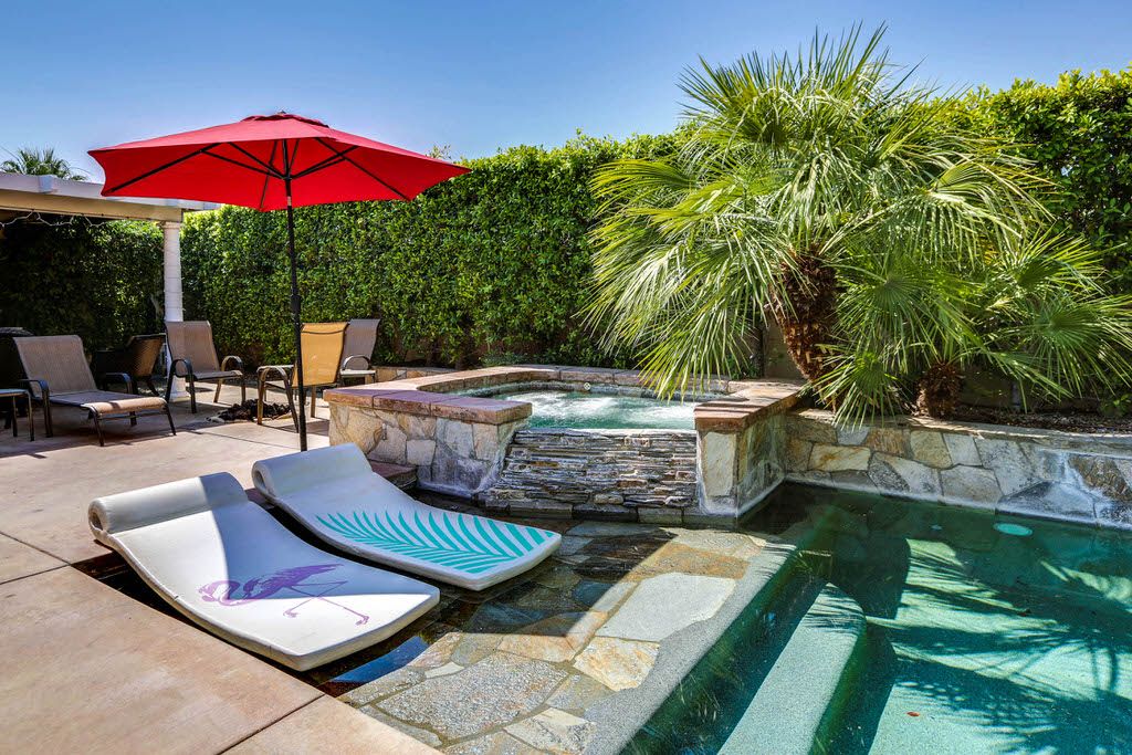 This Palm Springs vacation villa is a luxurious central Palm Springs estate designed with privacy and outdoor resort living in mind. From a walled private outdoor courtyards, to an outdoor seating area by a cozy outdoor fireplace, to a pool-side wetbar and grilling area, this Palm Springs vacation rental's amenities will exceed your expectations.