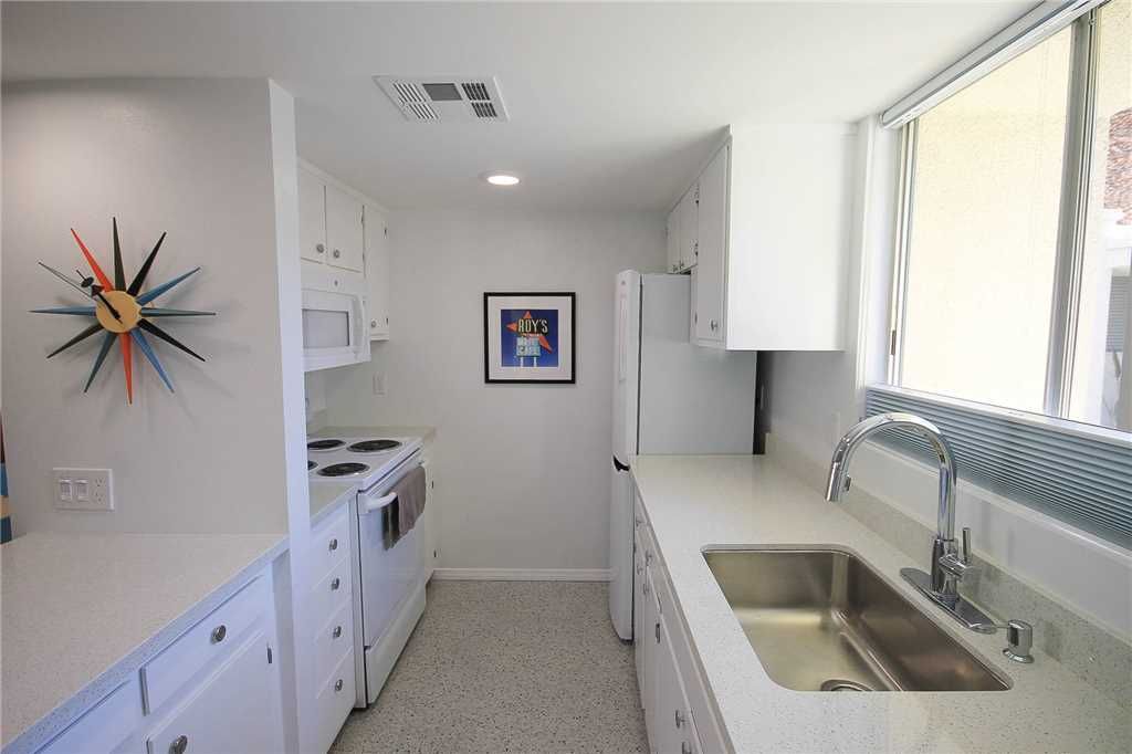 This bright and modern contemporary retreat has been completely renovated and has everything you could want from a vacation condo for Palm Springs living. It has been decorated in classic mid-century vintage and new retro furnishings without sacrificing modern day amenities such as free WiFi, Netflix and US/Canada long distance, a clock radio with USB charging ports, a flat screen Smart TV, and a Bose stereo with Bluetooth connectivity so you can play your own tunes.