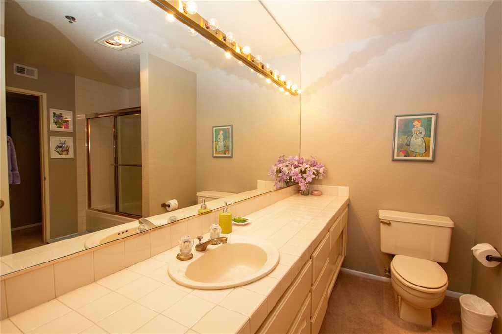 The second bedroom has plenty of room to spread out. A comfortable queen size bed awaits, and there is a nearby bathroom that's easily accessible.