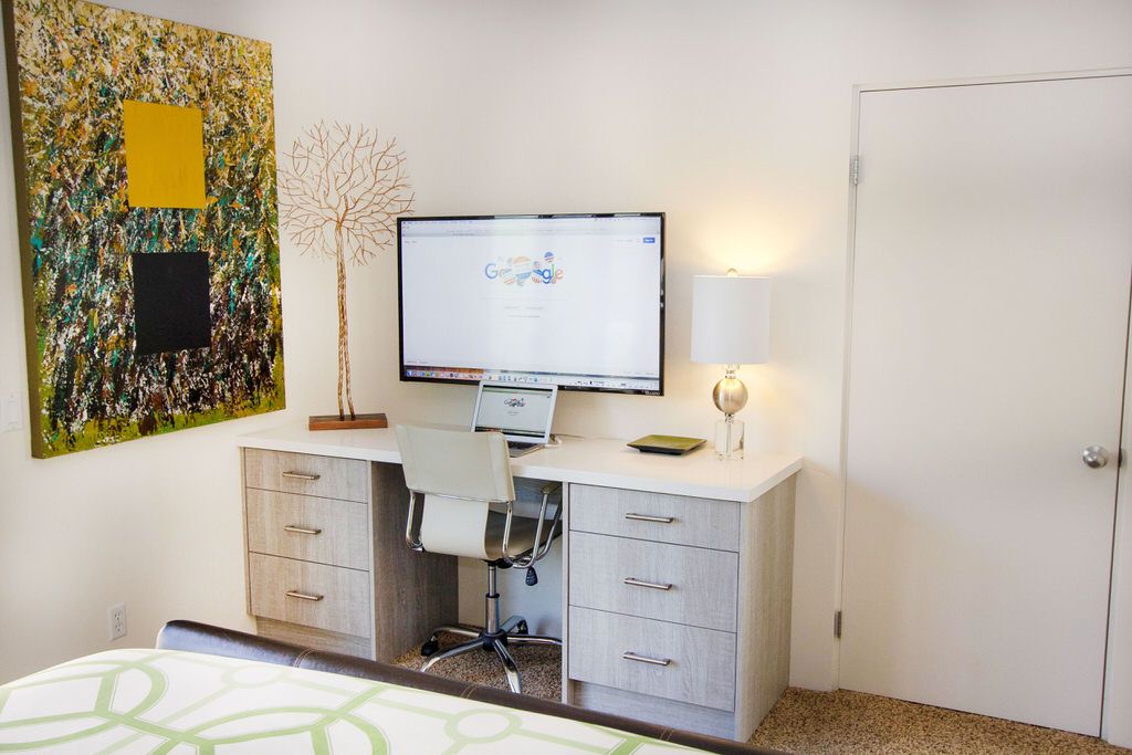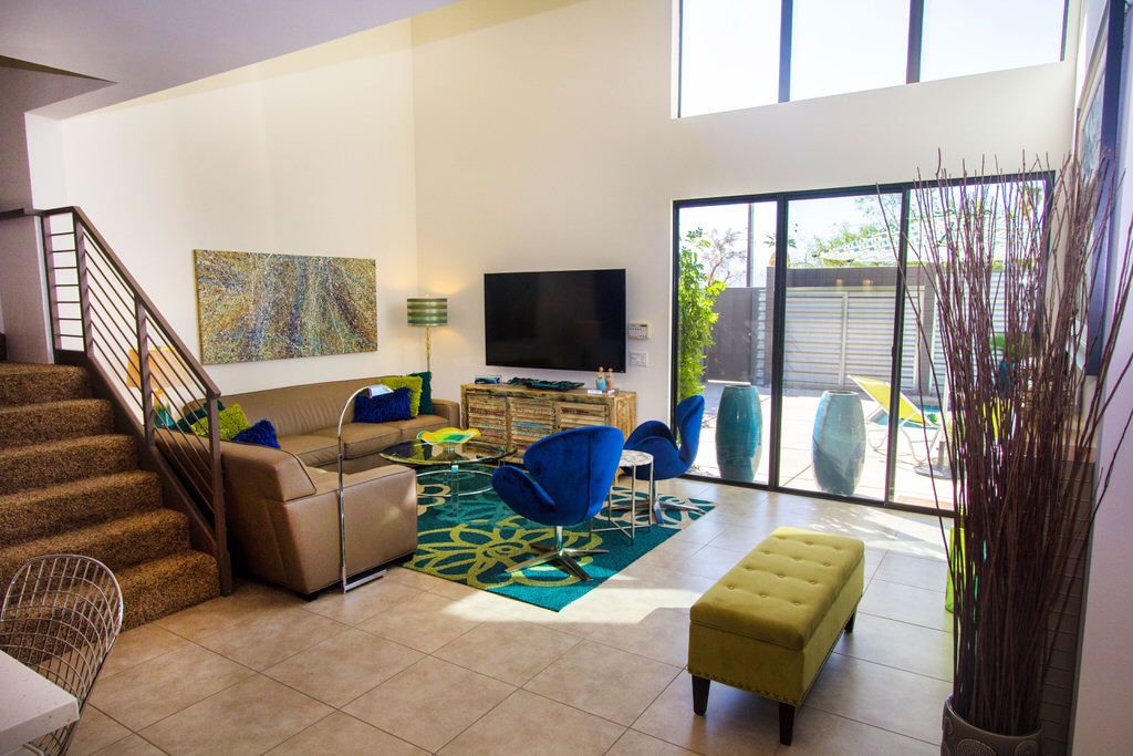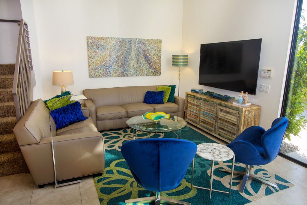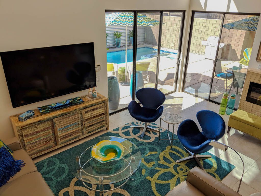 The living space features a couch, a loveseat, and two mid-century modern chairs to make socializing easy, or to relax in front of the 70" smart TV. The home also features high-speed wireless internet, so don't forget to bring your laptop or other wifi-enabled devices. An iPod dock enables you to enjoy your custom vacation soundtrack throughout this modern gem and motorized shades throughout.