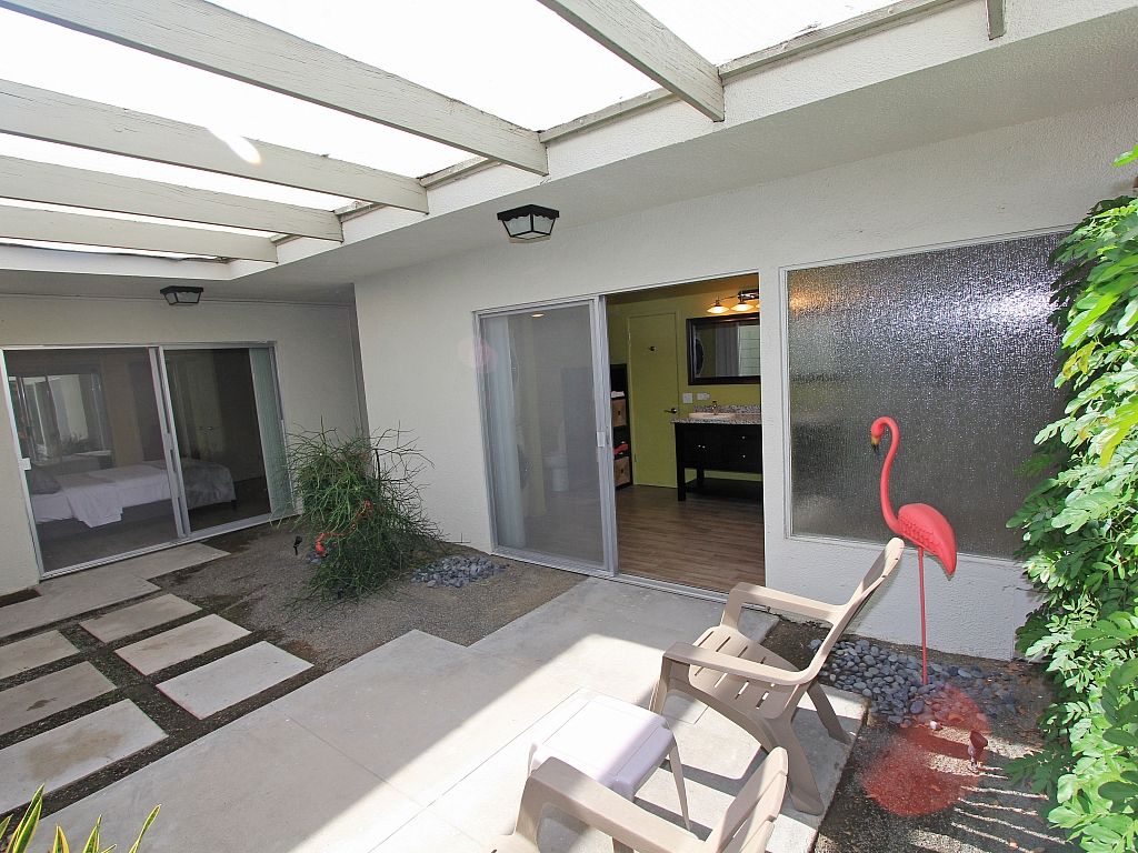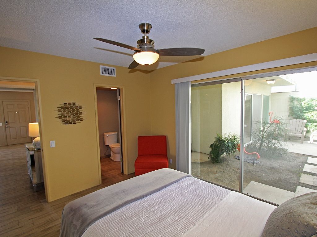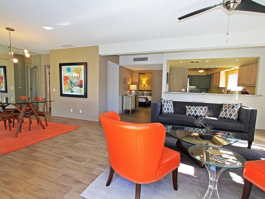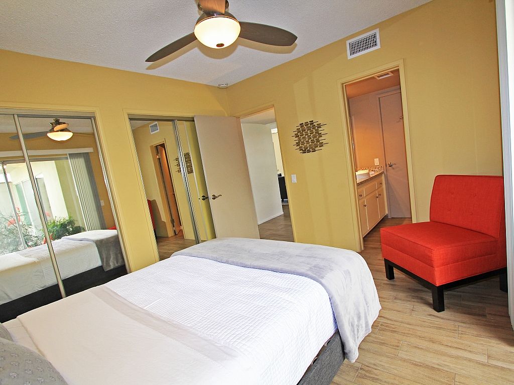Stylishly appointed, this vacation condo in Palm Springs has two extremely inviting bedrooms with en-suite bathrooms, not to mention that they're located on opposite ends of the living room providing complete privacy.