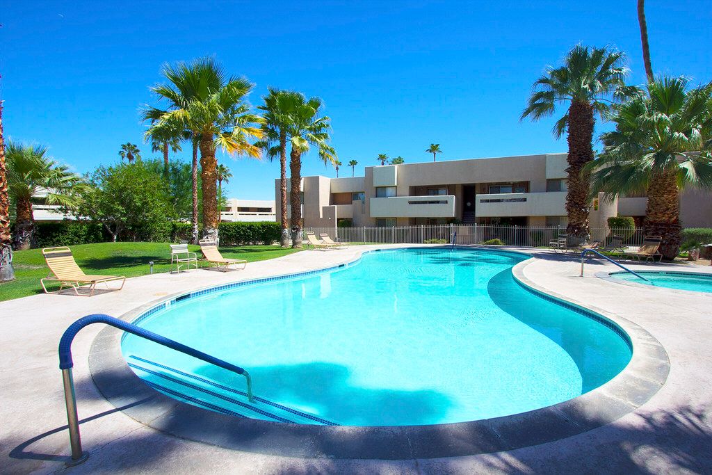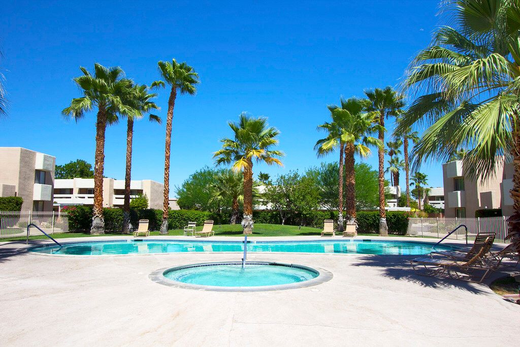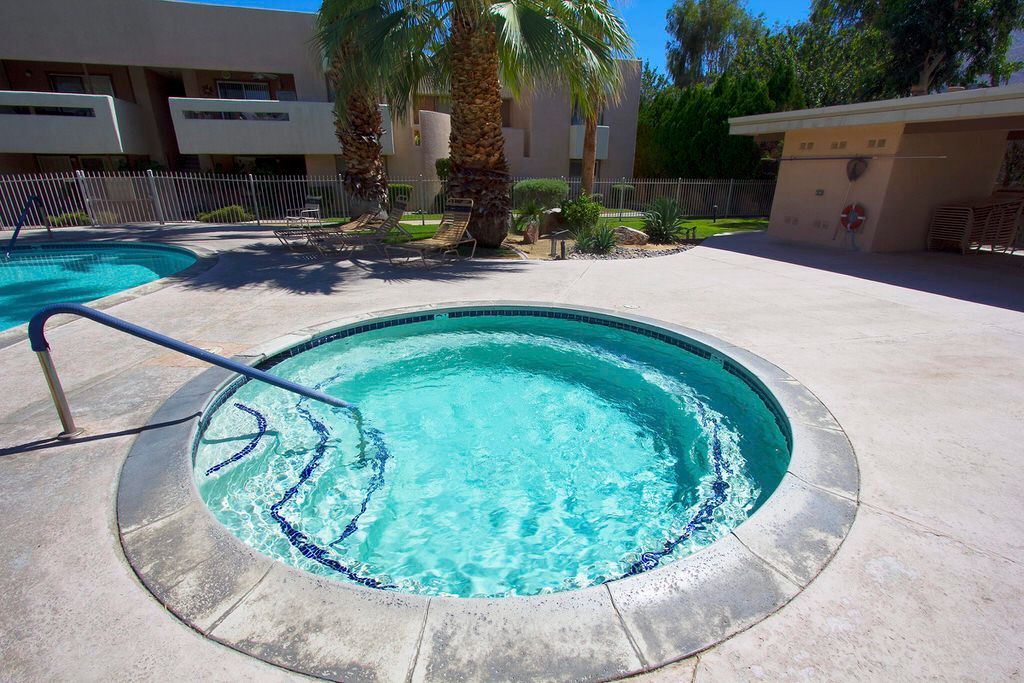 You'll find this Palm Springs condo for rent is located in a peaceful community perfect for rest, relaxation and fun. The community pool is heated year round and includes a community spa located within a 100 feet of the patio.