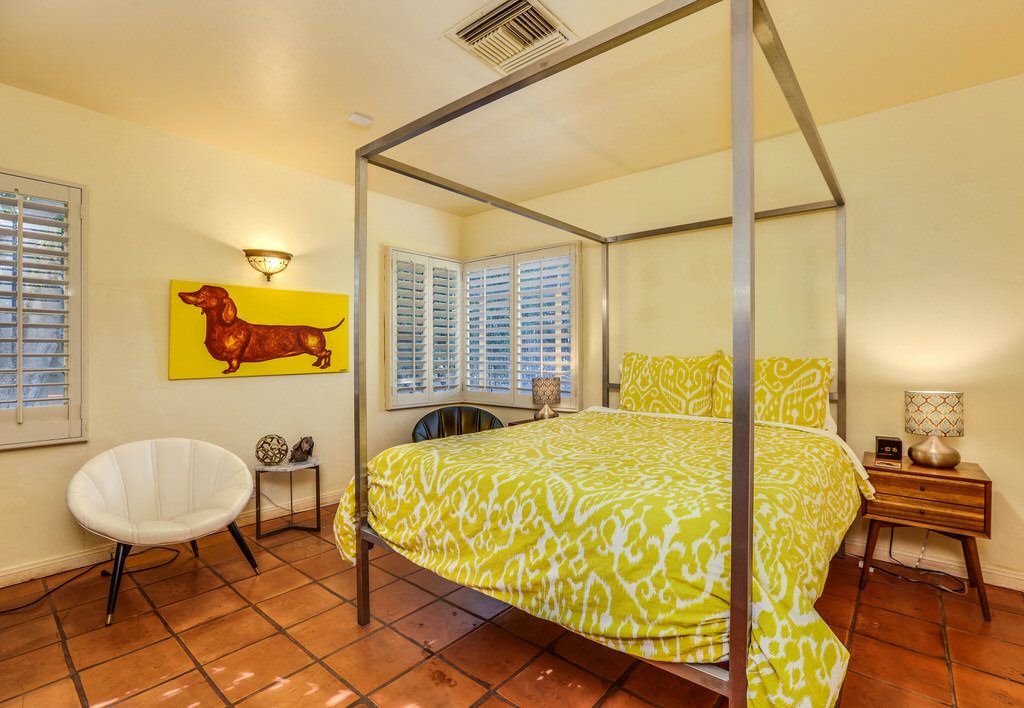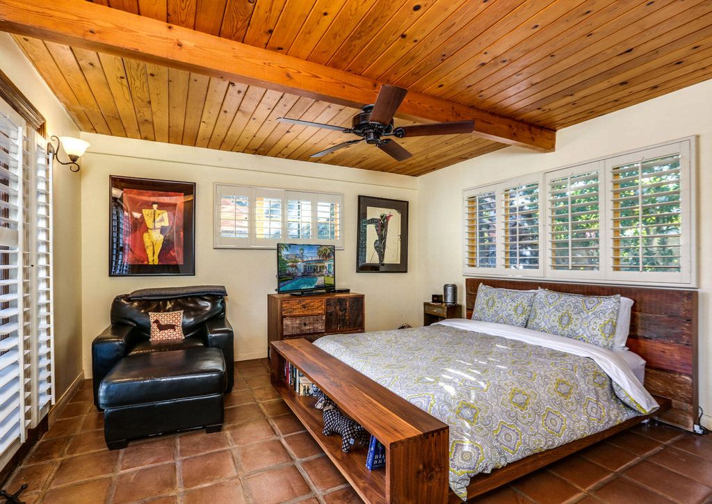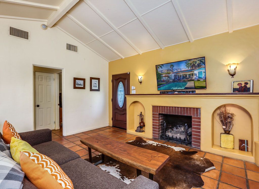 The Historic Palm Springs Oasis is a terrific 2 bedroom, 1.5 bathroom private sanctuary. Hidden behind wooden gates on a quiet street in the Little Tuscany neighborhood, this historic Spanish architectural vacation home features vaulted ceilings, saltillo tile floors, and walls of windows that exude the Palm Springs charm of days gone by.