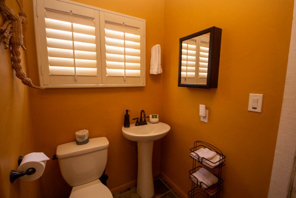Laundry facilities with a washer and dryer, and half bathroom, are located adjacent to the kitchen. This Palm Springs vacation home offers free high speed WiFi.