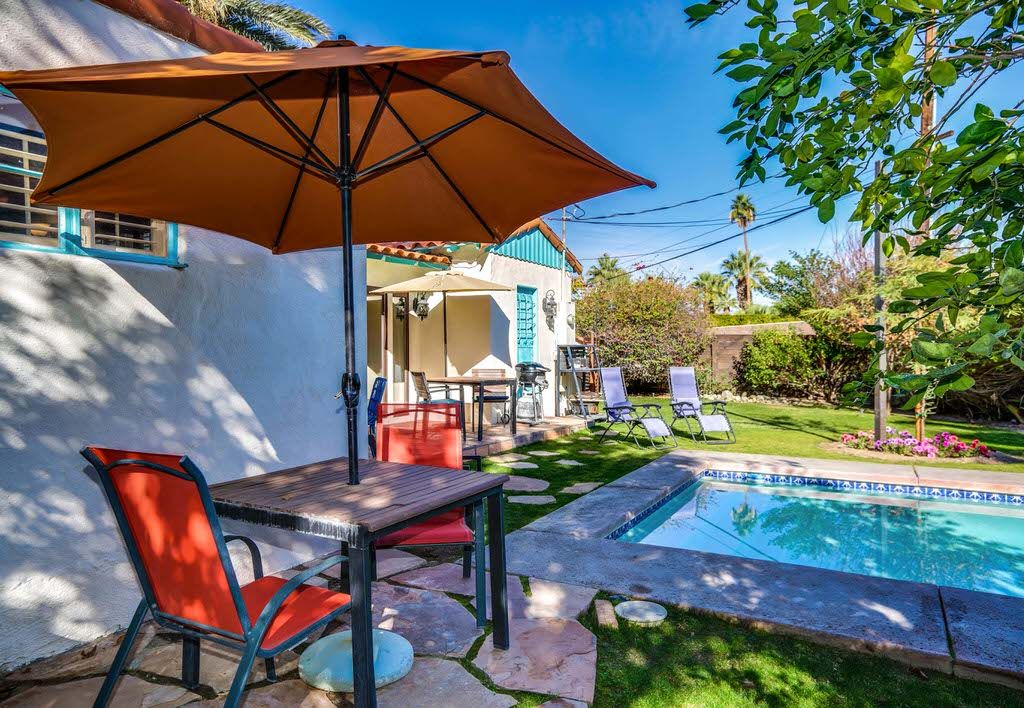 This 2 bedroom, plus poolside casita, rental home is a short drive to downtown Palm Springs with great dining, shopping, and attractions. There is plenty of room to spread out, relax, and enjoy your vacation at this private, historic 2 bedroom Palm Springs vacation rental home.