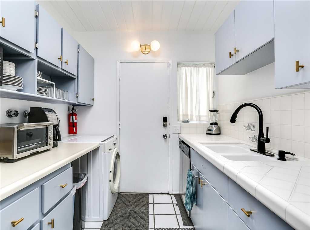 The kitchen is fully equipped with everything you will need to prepare delicious meals with friends and family, including a gas range, double ovens and breakfast bar with seating for 4.