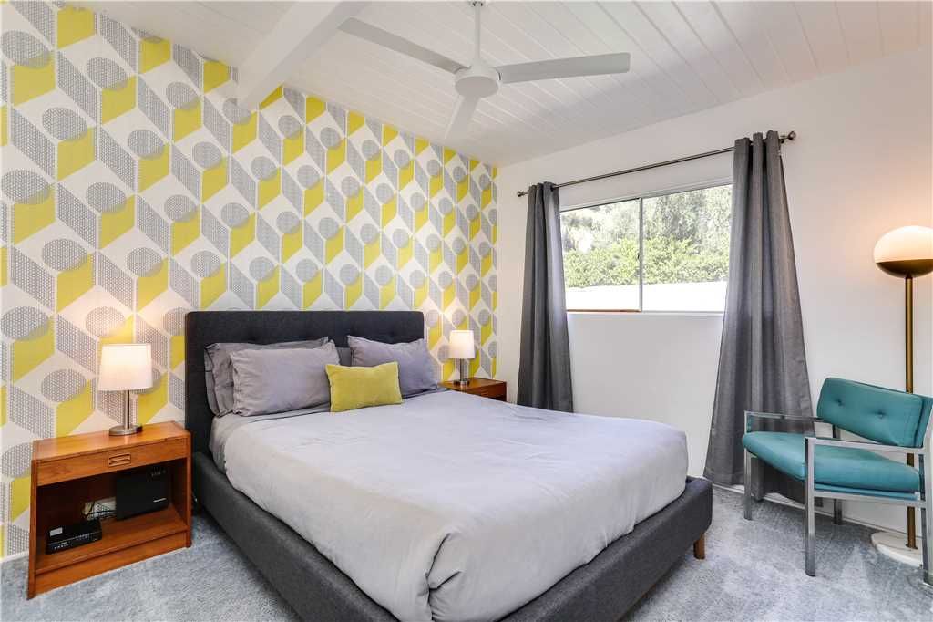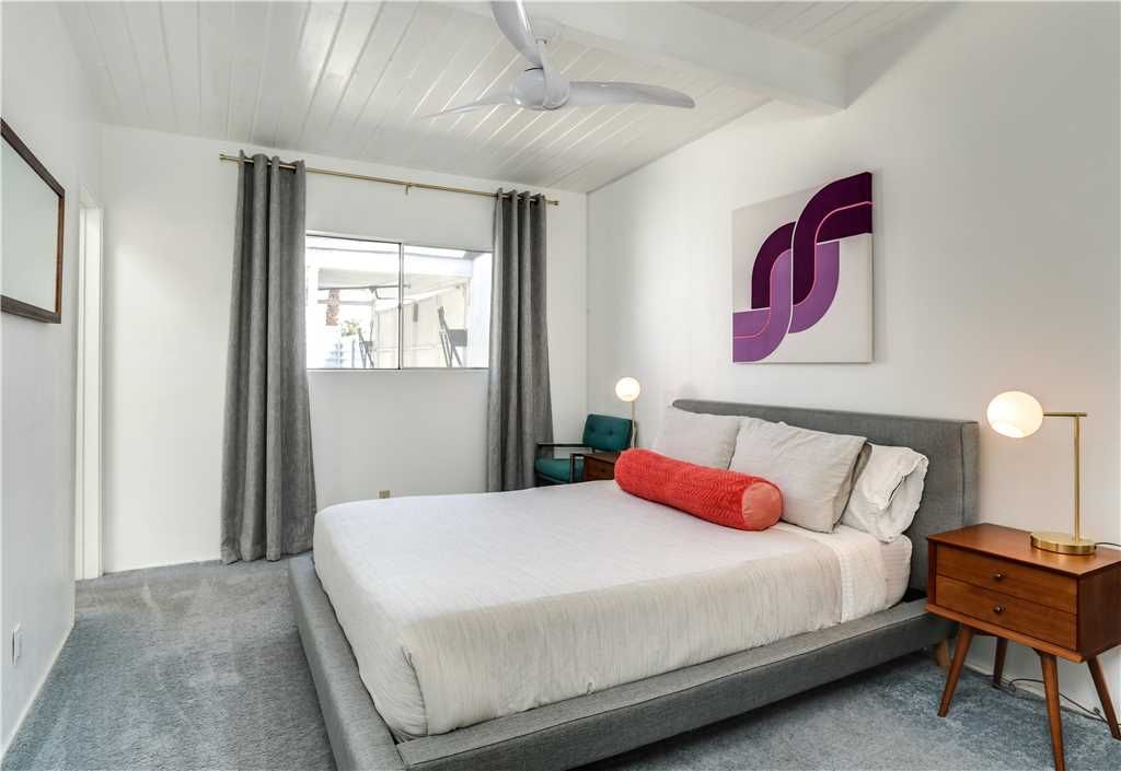Both guest bedrooms in this Palm Springs vacation rental are well equipped, featuring queen-size bed, nightstands, lamps and closets.