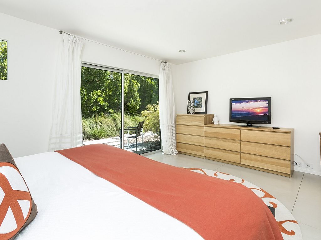 The master bedroom features a king bed, large ensuite bath with soaking tub and walk in shower and a private deck overlooking the pool with the most dramatic views.