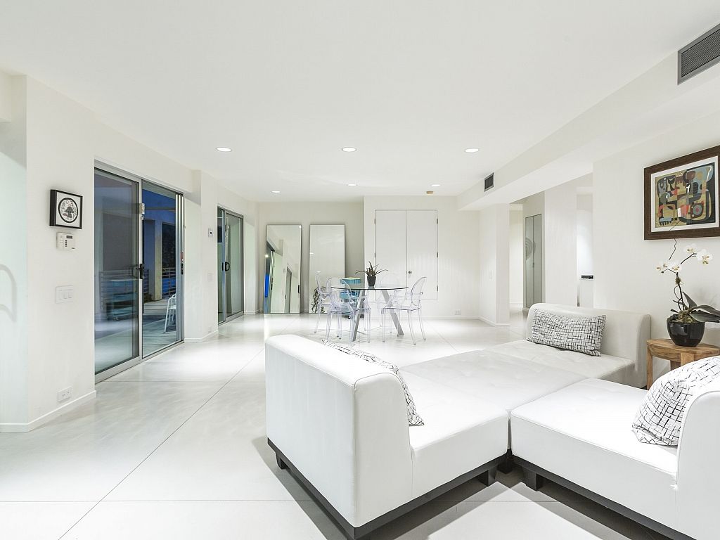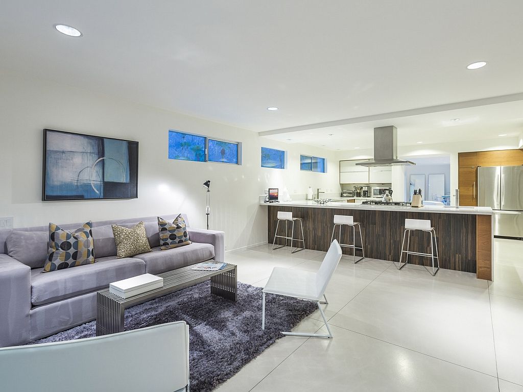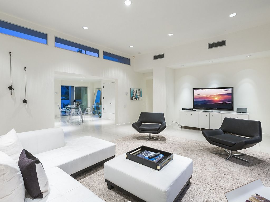 Inside this dramatic vacation home, you'll find exceptional open living spaces appointed with sleek modern furniture. The media room features a large seating area, and the massive chef's kitchen is stocked with all the amenities you'll need for entertaining friends and family.