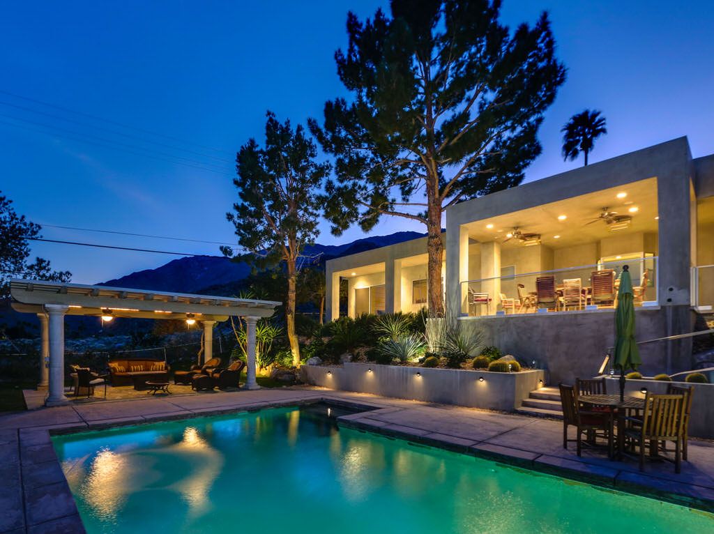 The views from the poolside lanai of this Palm Sprigs home are truly spectacular.