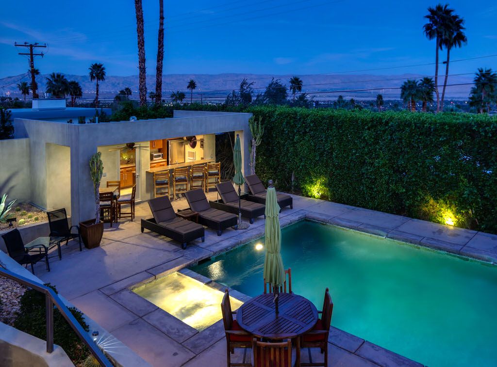 Custom designed features abound in this luxury vacation rental. This modern home showcases a dramatic salt water pool and spa with an estate-like feel and priceless mountain and City views.