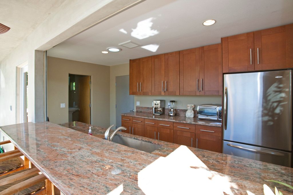 At pool side, there is a pool house offering a bar for cool refreshments, complete with bar stools, a mini-kitchen and full bathroom.