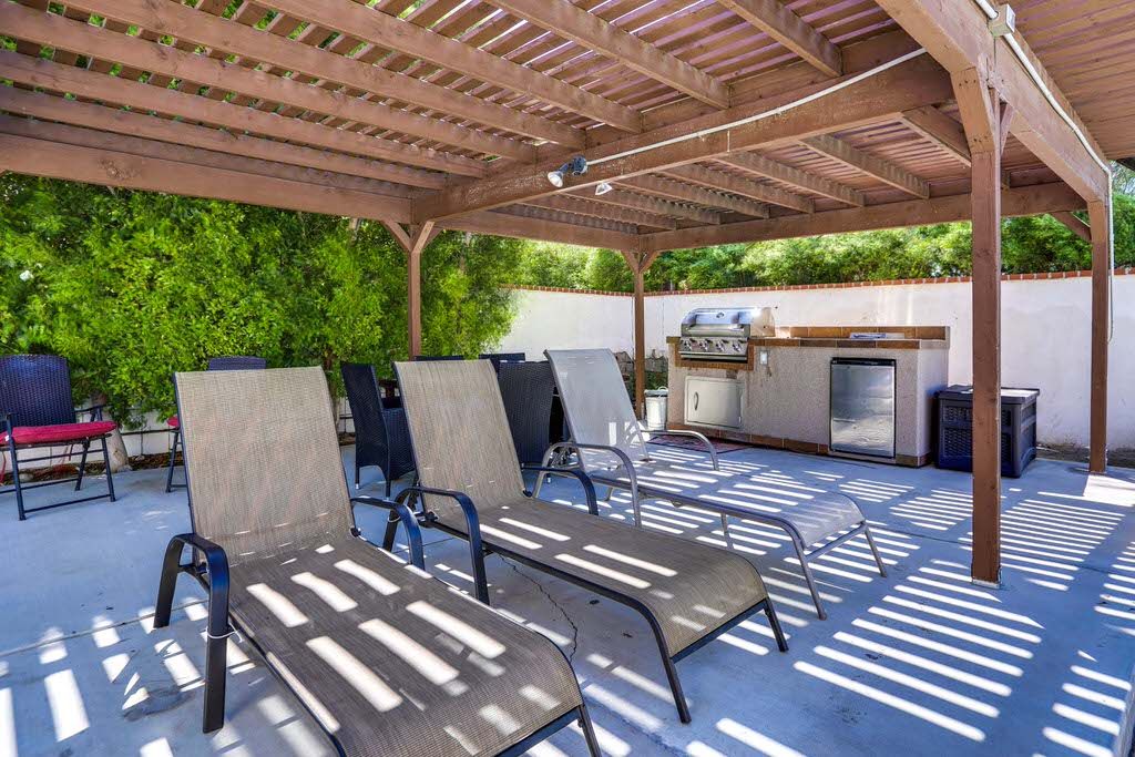 You'll enjoy the spacious outdoor kitchen and living area with dining table and multiple comfortable sitting and lounging areas. The built in gas grill is perfect for preparing meals for large groups and dining alfresco while enjoying the beautiful mountain views.