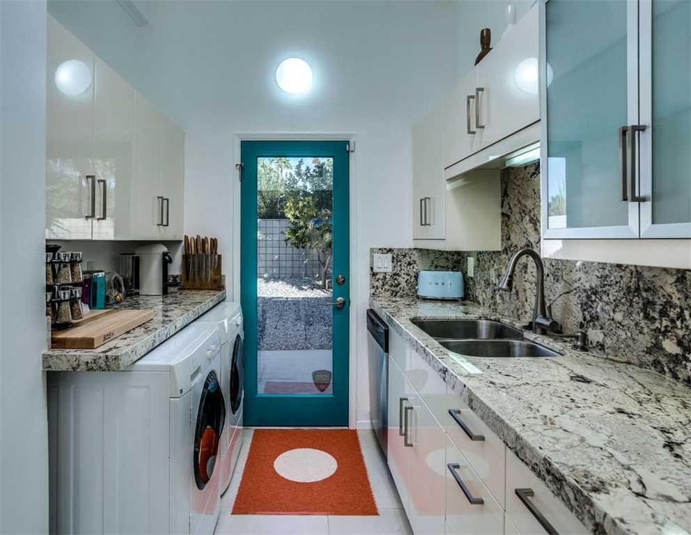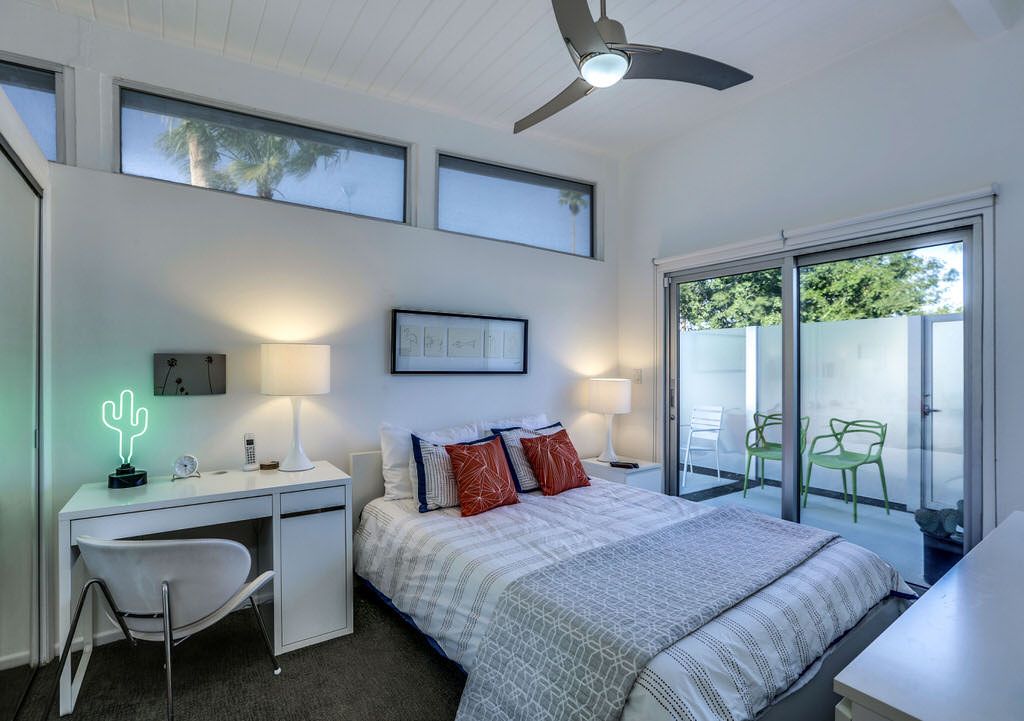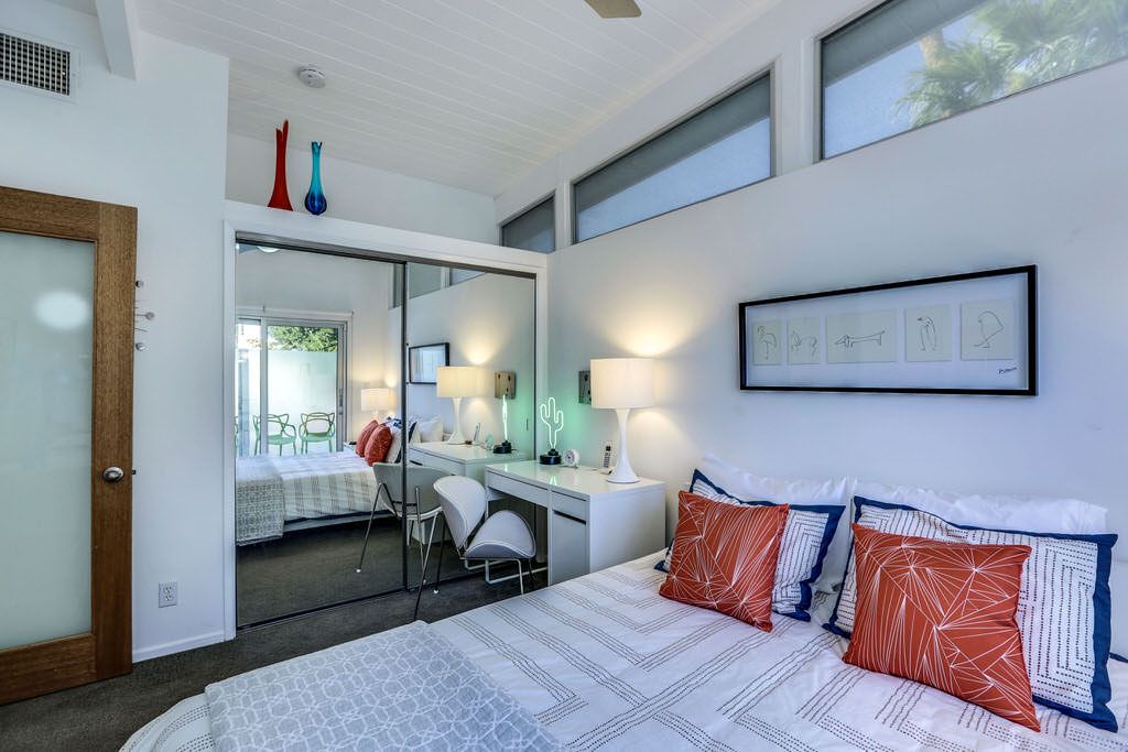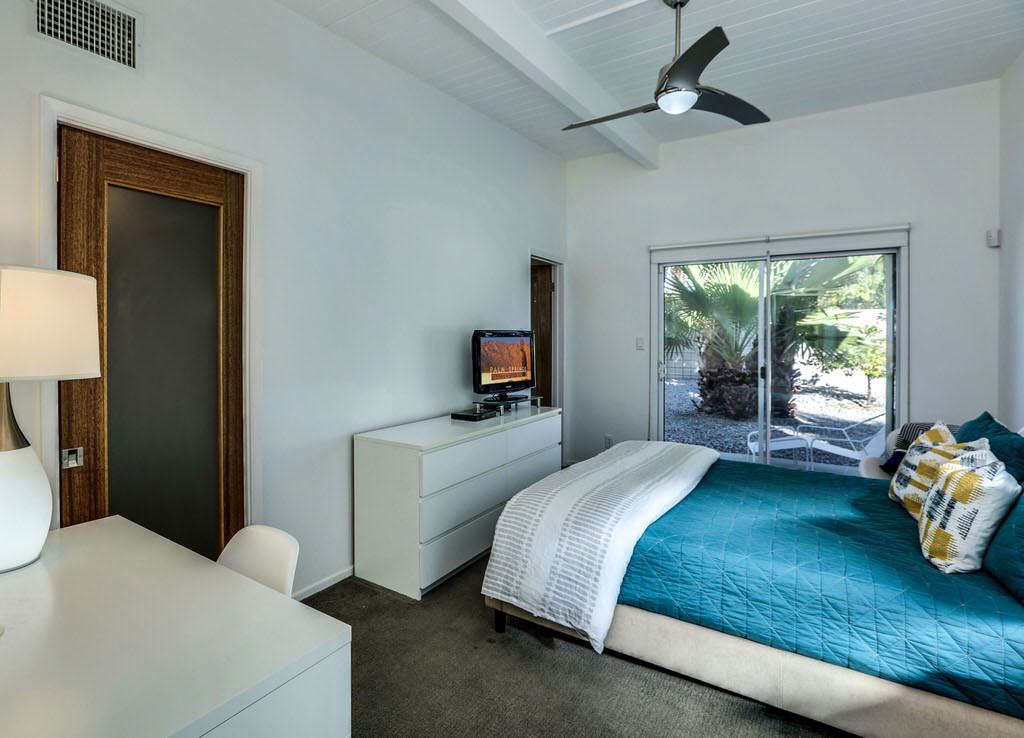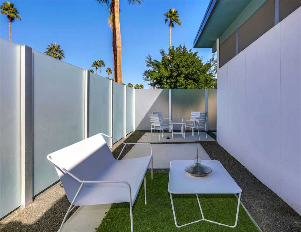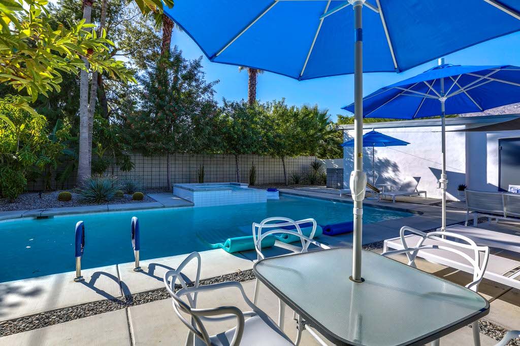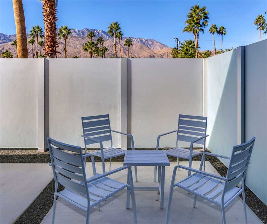 The thoughtful updates of this private two bedroom home showcase the post-and-beam construction, tongue and groove ceilings, generous amounts of architecturally sculpted concrete, and of course, wide expanses of glass that connect you to the pool and spa. With sweeping views of the San Jacinto Mountains, the orientation of the pool area allows for maximum sun exposure, or take advantage of the shade provided by the large covered patio.