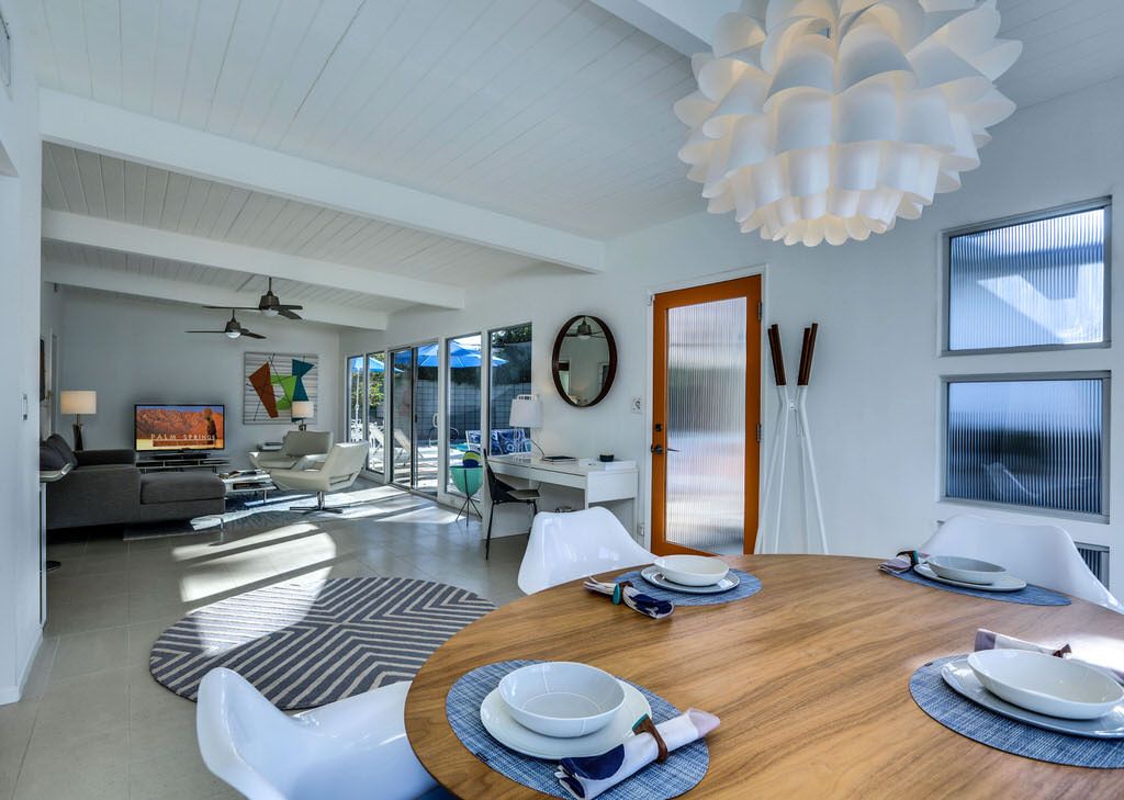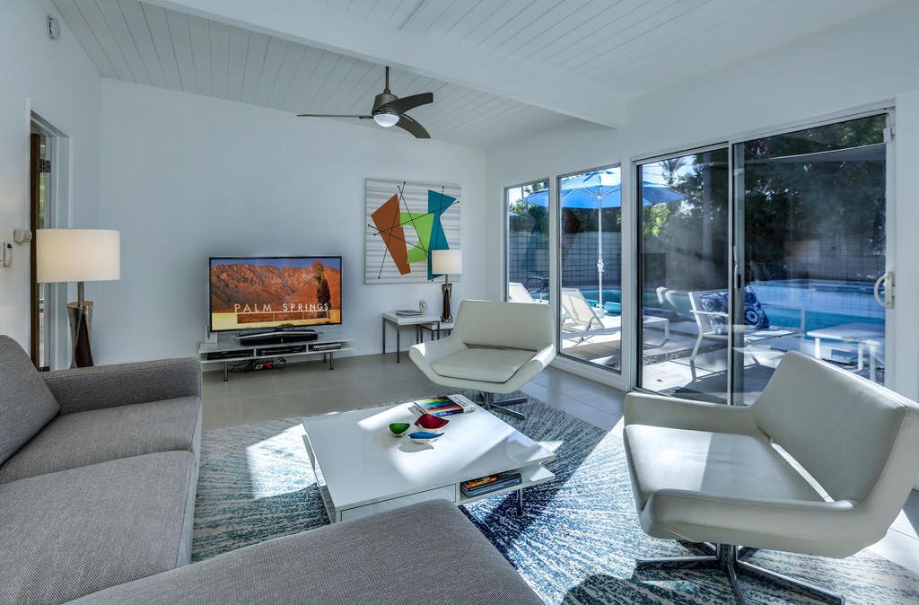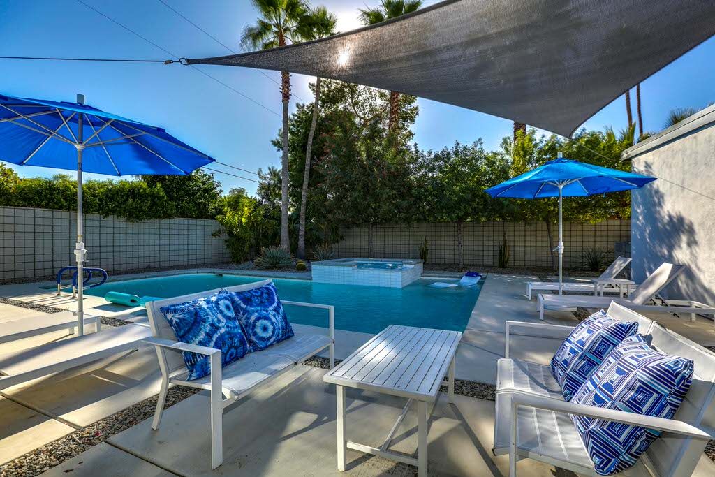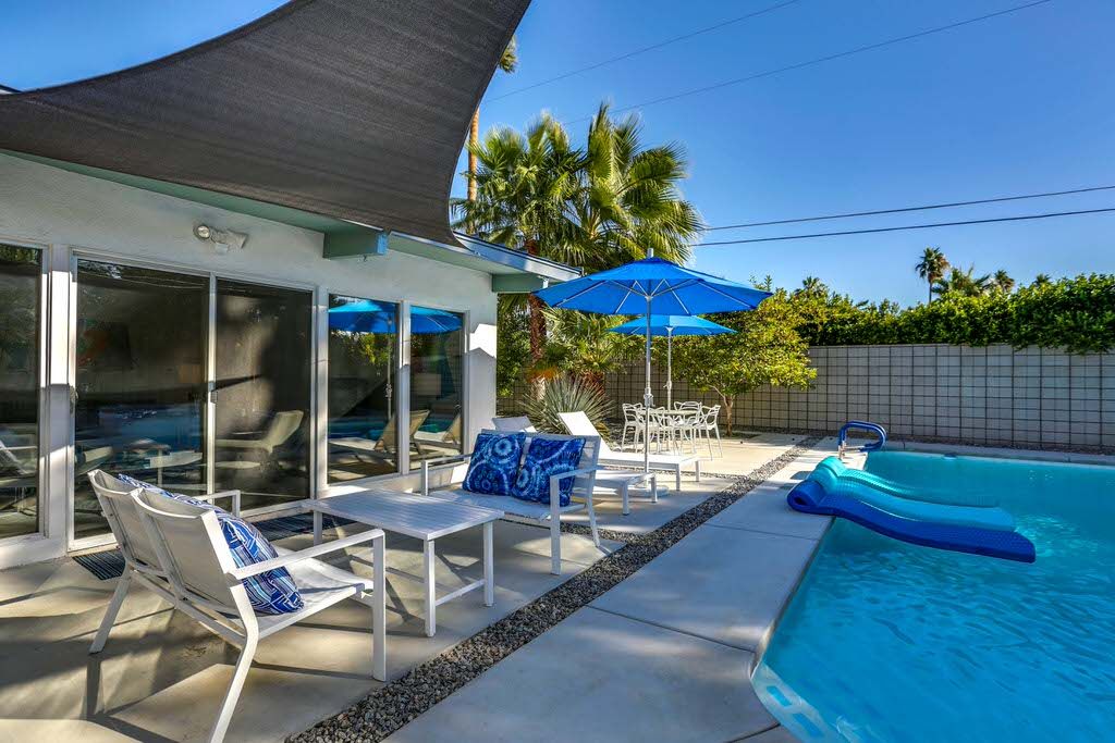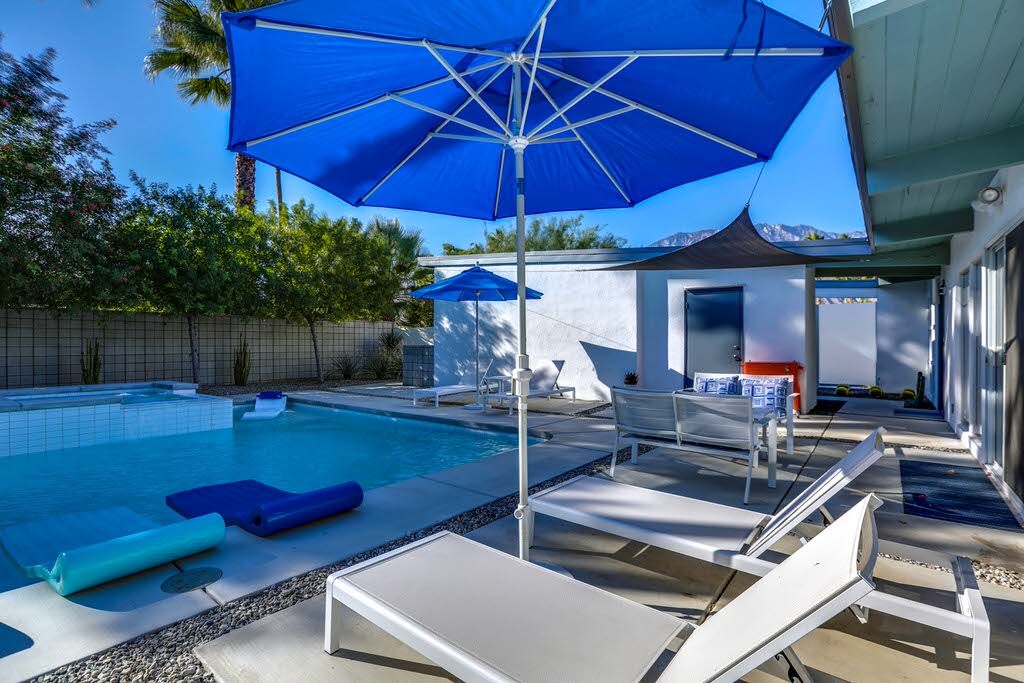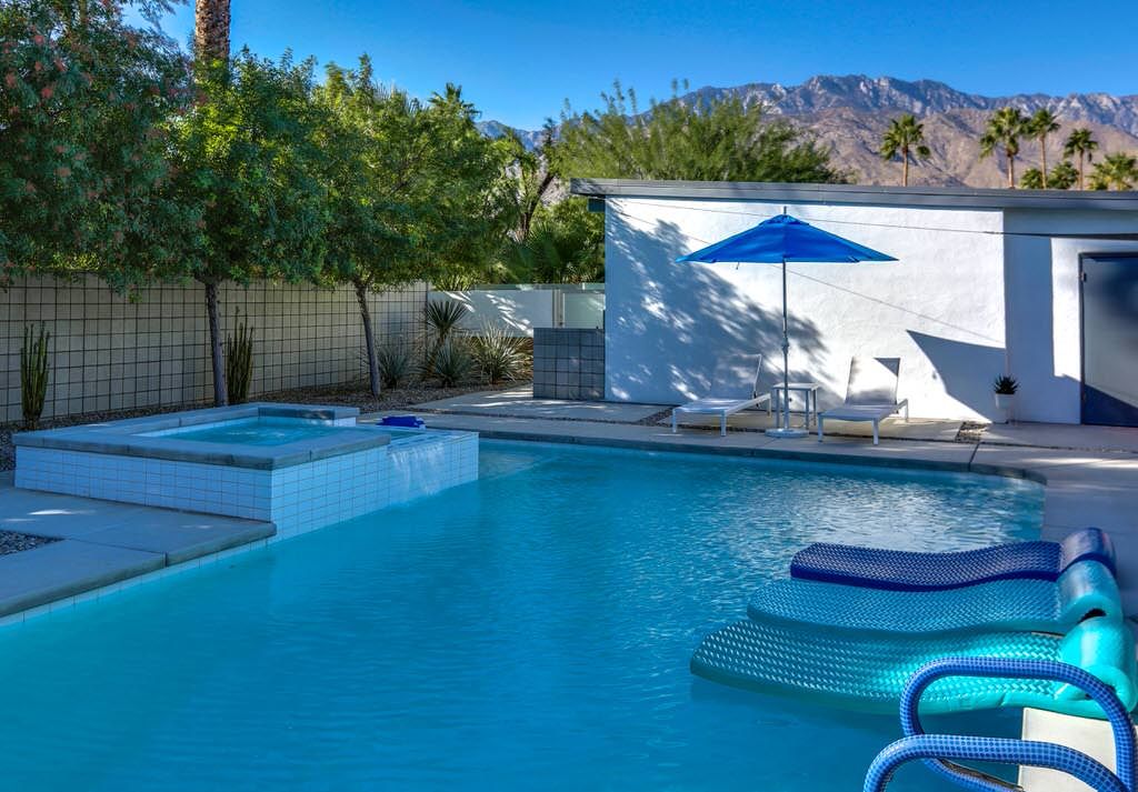 Enjoy this inviting and comfortable Palm Springs midcentury modern vacation home. This delightful 2 bedroom pool home offers very private grounds, outstanding views of the Palm Springs mountains, palm trees, desert landscape, and clean modern decor.