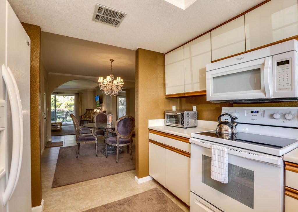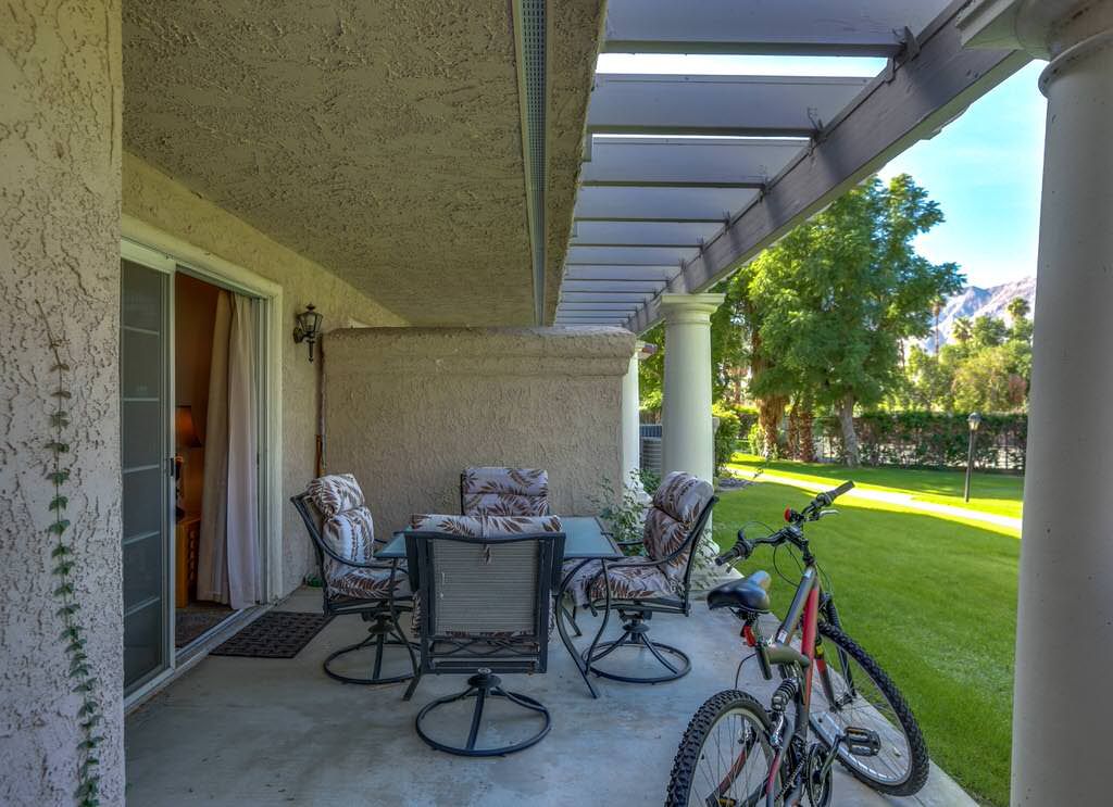 This unit also comes with a complimentary bicycle so guests can enjoy the club's community trails. Enjoy the propane BBQ on the mountain-facing patio with outdoor dining . This complete Mesquite Condo with its plush, contemporary furnishings, exquisite mountain views, ground level and close proximity to downtown Palm Springs make it the perfect choice for your next Palm Springs getaway.