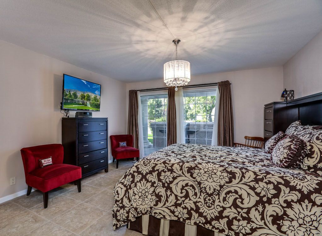 The master offers a king size bed with a 50" HDTV and DVD player. The second bedroom has a queen size bed, HDTV, and small attached patio.