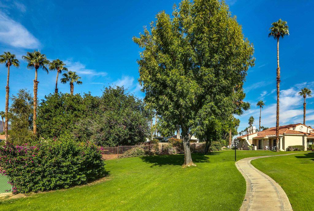 Welcome to the perfect location in Palm Springs with the walk-out views of this deluxe 2 bedroom condo at Mesquite Country Club.