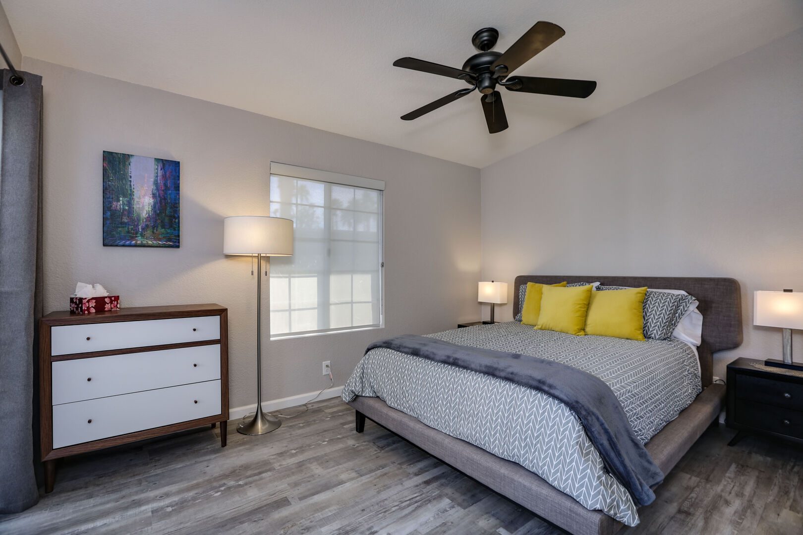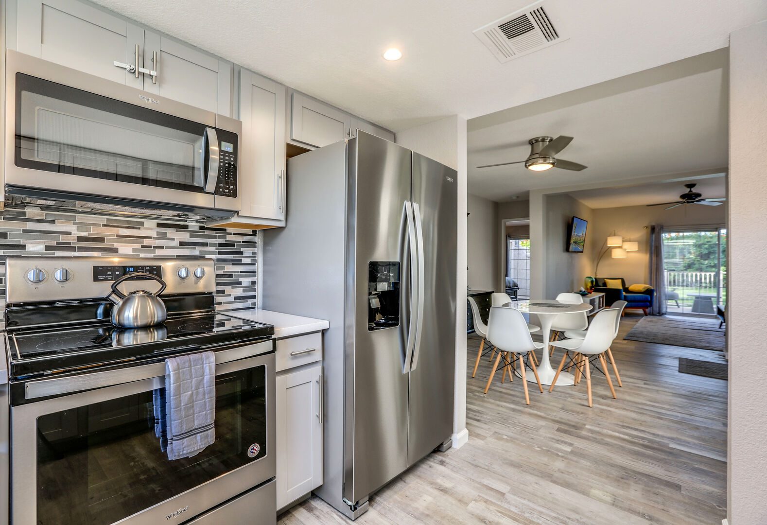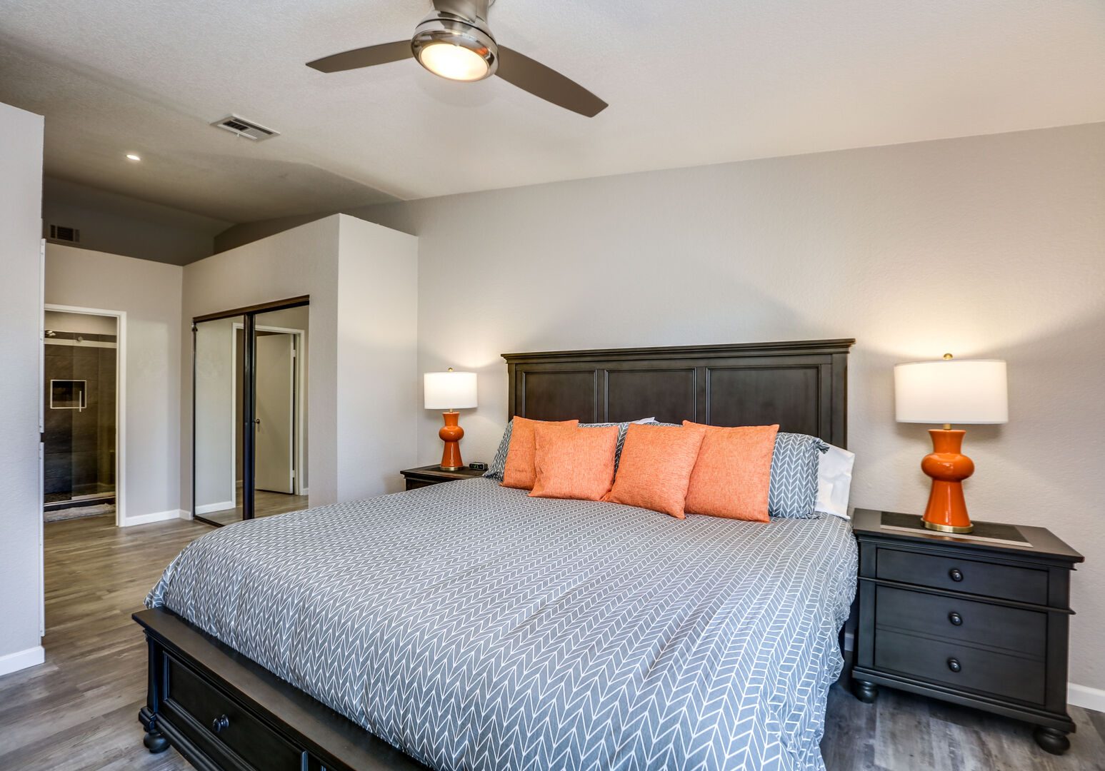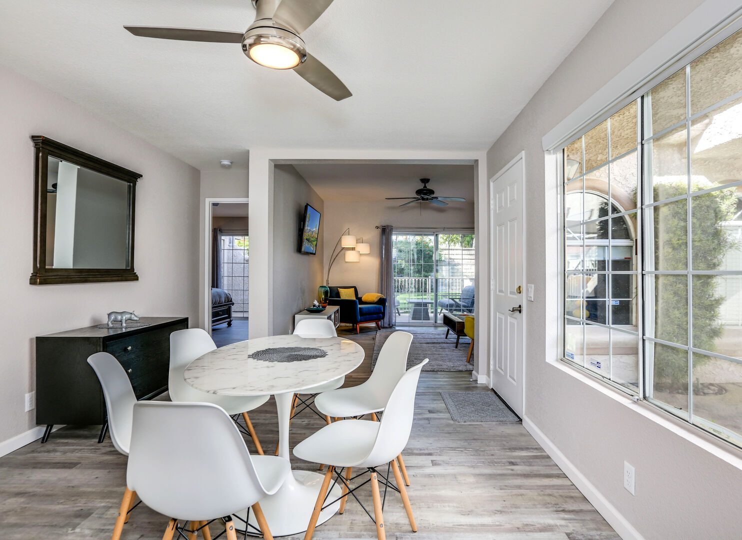 This fully renovated, Mesquite Phase III ground floor unit is now available for you to enjoy in central Palm Springs. The entire two bedroom, two bathroom unit is new from the studs out, and you'll appreciate the brand new furnishings and high-end amenities. This Mesquite Country Club condo is an end unit, located on the ground-floor and mere steps from one of the multiple community swimming pools and spas. Covered parking is just a few steps from the front door, yet the rear patio offers secluded serenity with no views of neighbors, or any reason for anyone to intrude on your privacy.The unique location within the community features lush landscaping and a grassy lawn, that feels like your very own. Did we mention the complete renovation of this beautiful retreat? Comfortable and Contemporary styling defines this open-concept floor,plan, and you'll appreciate the wall to wall tile flooring, brand new kitchen and bathroom cabinetry, brand new appliances, and brand new furniture. The U-shaped kitchen is well equipped with everything you'll need to prepare meals and entertain guests. All appliances are stainless steel and top-notch.The two bedrooms of this Palm Springs vacation condo are on separate sides of the home to allow for optimum privacy, and both offer direct access to their own unique patio space. The spacious master suite features a King bed, flat screen TV, dual vanities, walk in shower, and direct rear patio access. The second bedroom is located in the front of the condo and features a Queen bed, flat screen TV, and shared hallway bathroom, with walk in shower. There is no bathtub in this condo.Take advantage of Palm Springs Mesquite Country Club amenities, which include: 18 hole Championship golf course, 16 pools, 18 jacuzzis, pro shop, restaurant, cocktail lounge and club house. When you rent this Palm Springs condo, you'll have access to playing golf (reasonable greens fees apply) at Mesquite Country Club. This 2 bedroom vacation condo is just minutes from downtown Palm Springs, with wonderful restaurants, shops, and art galleries. Enjoy fantastic Palm Springs attractions nearby, like the Palm Springs Aerial Tram, Wet n Wild Water Park, Indian Canyons Preserve, golf and outlet mall shopping. Property DescriptionApproximately 1175 sq ftLocated in Palm Springs2 TVsPropane BBQCommunity Pool & JacuzziWasher and DryerWiFiLocal/Long Distant Phone Calls Children AllowedSmall Dog Allowed30 Night MinimumCity ID #4319TOT #4004Room ConfigurationMaster: King, Flat Screen TVGuest: Queen, Flat Screen TVBathroom ConfigurationMaster: En Suite ShowerGuest: ShowerAmenities