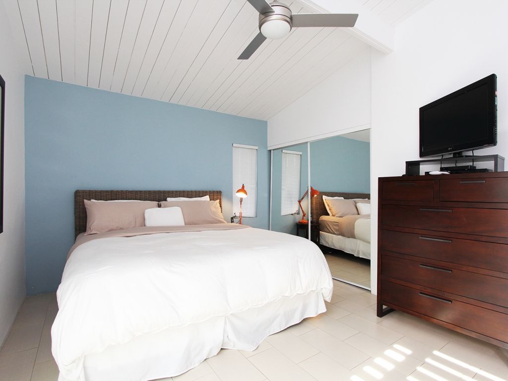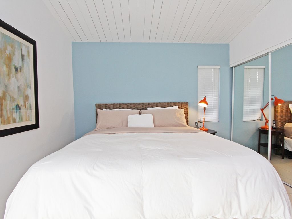 In the master bedroom youwill find a king size bed, en-suite bath, 32"" TV with DVD player and direct access to the backyard. The first guest bedroom has a queen size bed with 27"" TV and a second guest bedroom has a pair of twin beds.
