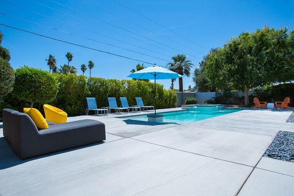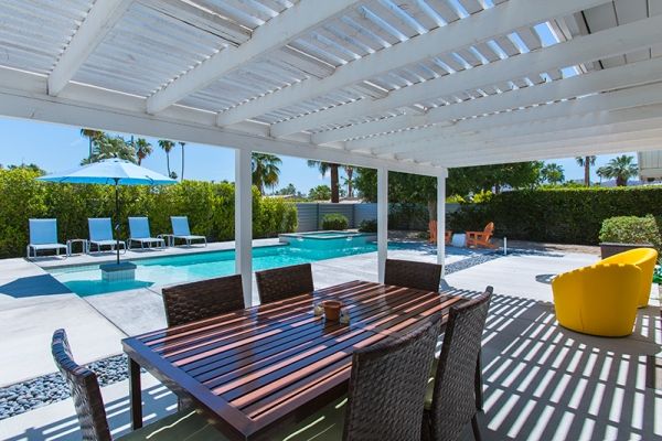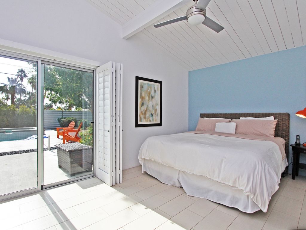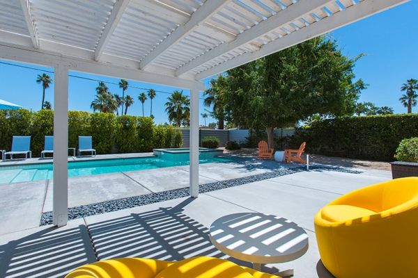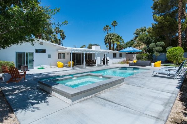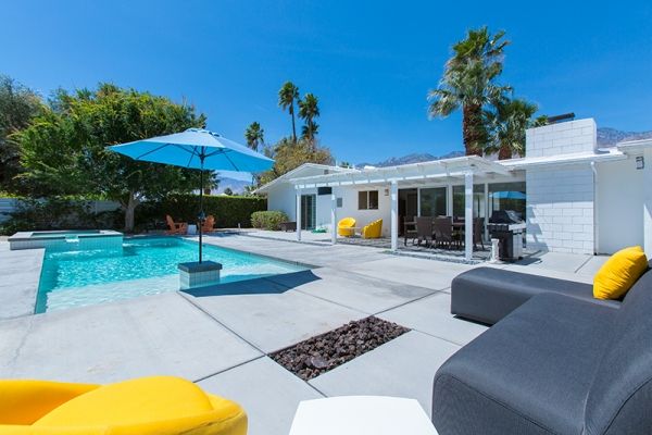 Midcentury modern style This newly available 3 bedroom and 2 bathroom Palm Springs mid-century modern vacation rental is sun-filled and open with a large pool for swimming and sunning - plus beautiful mountain views.