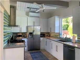 The kitchen is fully equipped with all the amenities and cooking utensils needed to prepare your favorite meals. The kitchen features beautiful views and a glass slider directly to the covered patio making outdoor dining a breeze.