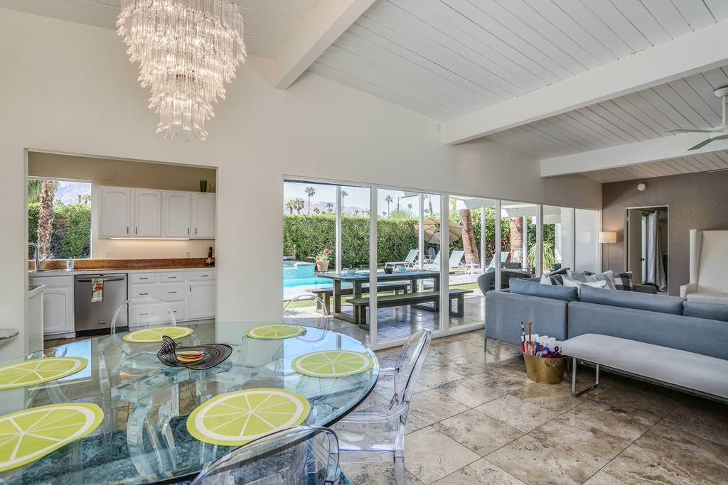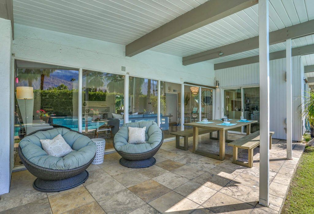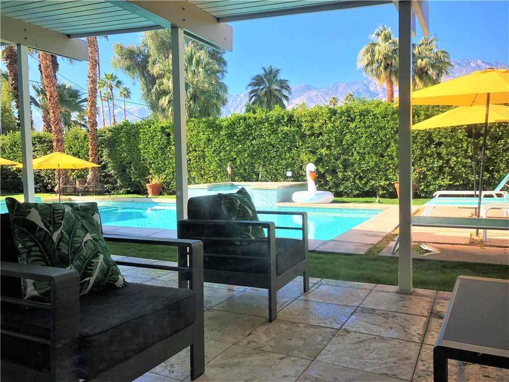 This home is perfect for those who like to entertain and enjoy indoor- outdoor dining and activities. There is a covered back patio living area overlooking the pool and mountains inviting the sunshine and great Palm Springs weather indoors.