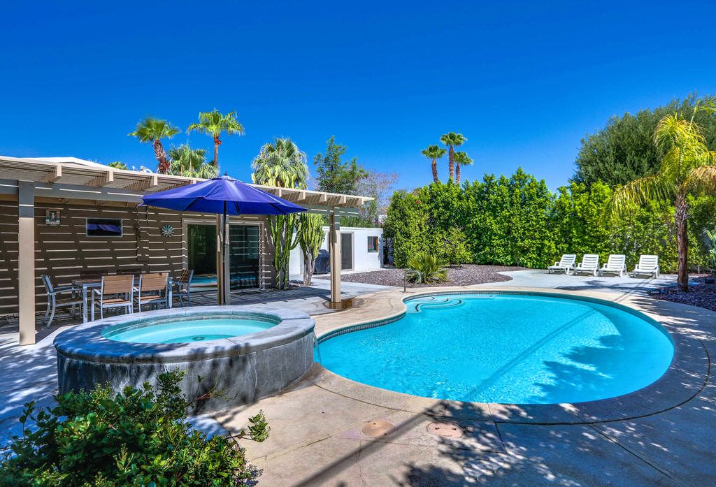 This tranquil Palm Springs vacation home is nestled on a quiet street, perfect for soaking up the serenity of the desert in addition to the famous year round sunshine