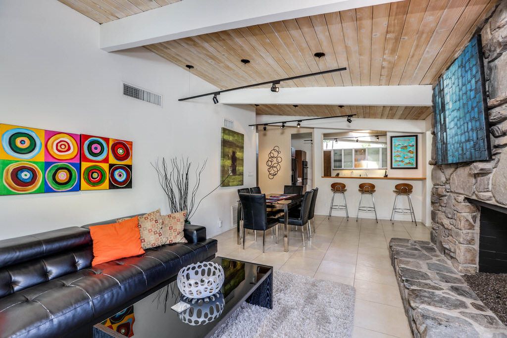 The house itself was thoughtfully updated with modern amenities, while carefully maintaining the original midcentury vibe. You'll enjoy this Palm Springs vacation home's spacious, open floor plan, and the signature vaulted, natural wood post and beam ceilings throughout.