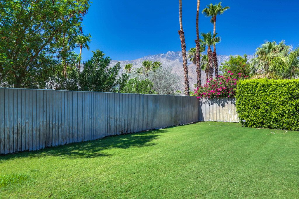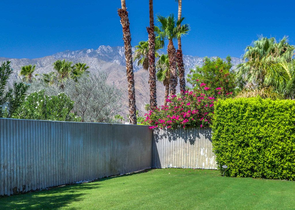 This delightful vacation home's yard faces East, maximizing the morning sun and keeping the home cool in the late afternoon and evening. As the sun dips behind the dramatic Palm Springs mountain backdrop you can watch the lights of the Palm Springs Aerial Tram climb up and down the mountain.
