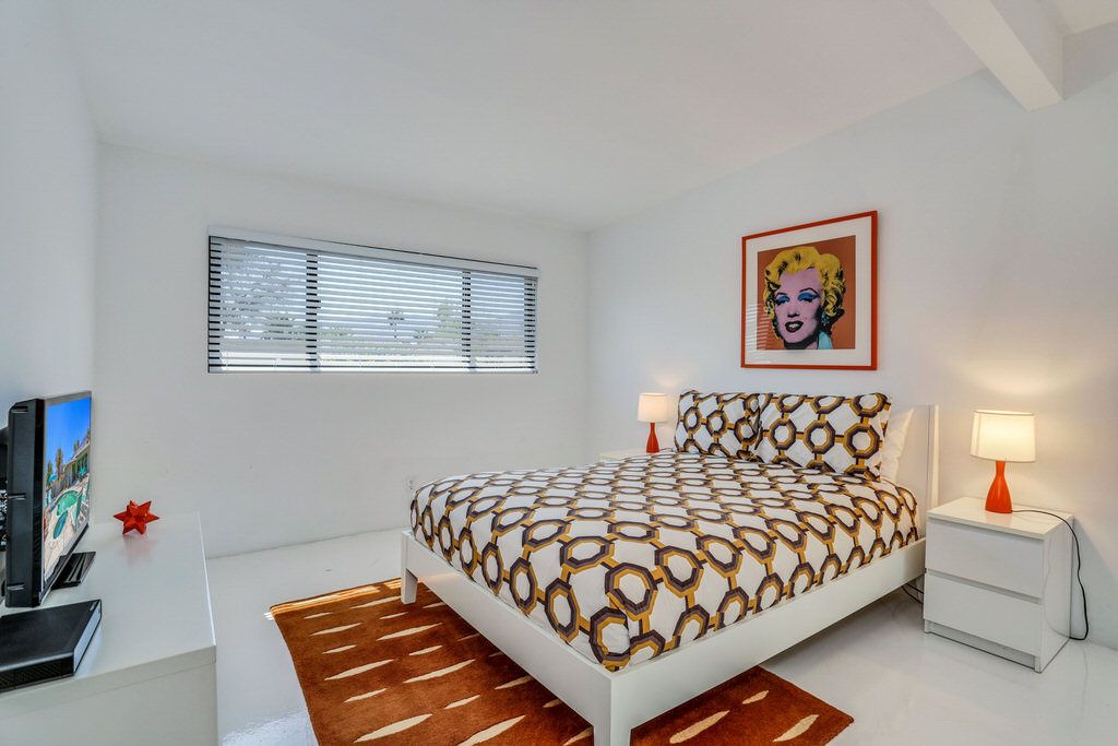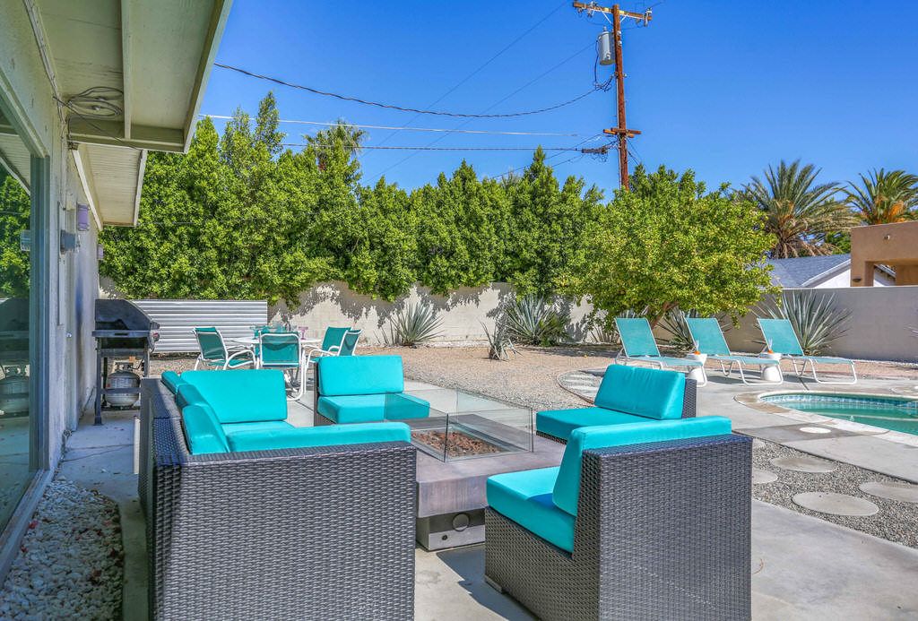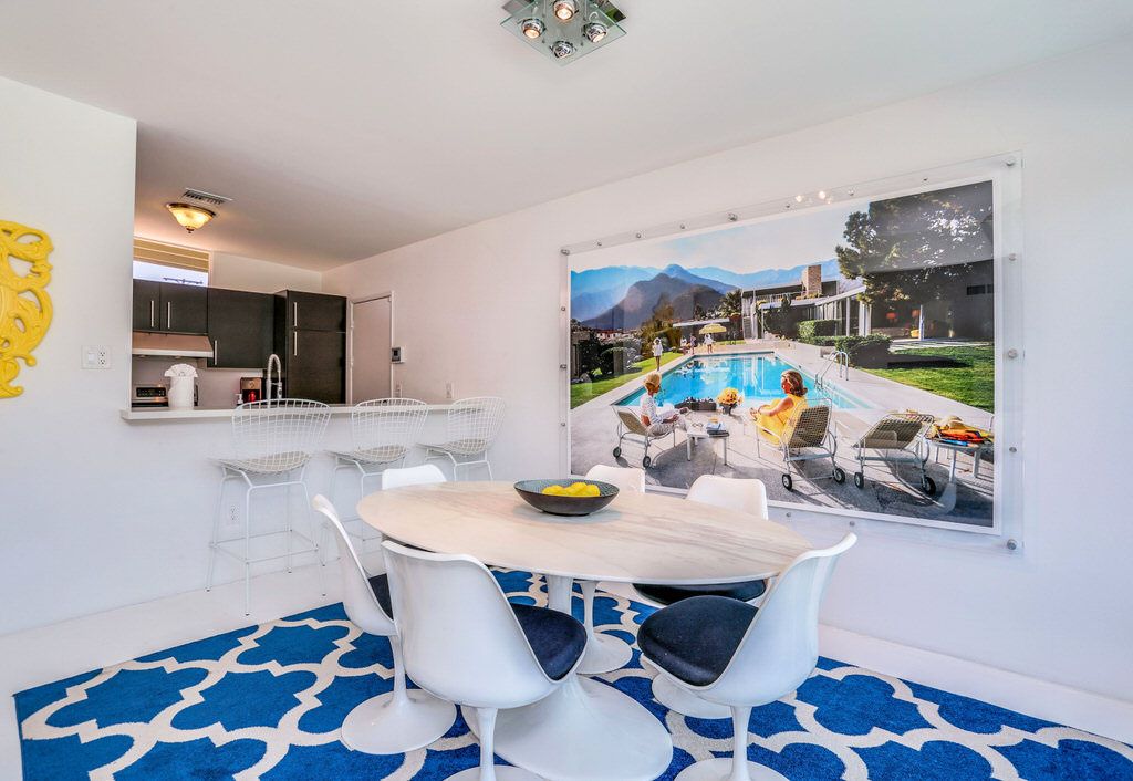 Take a step into yesteryear with the retro feel but all the modern upgrades you expect. Inside, enjoy sliding glass doors to the multiple outdoor patios, quartz counters and modern white concrete floors. The updated kitchen includes new cabinets, quartz counters and stainless steel appliances. This Palm Springs vacation home offers a comfortable relaxing feel to be enjoyed by all.