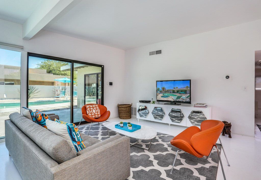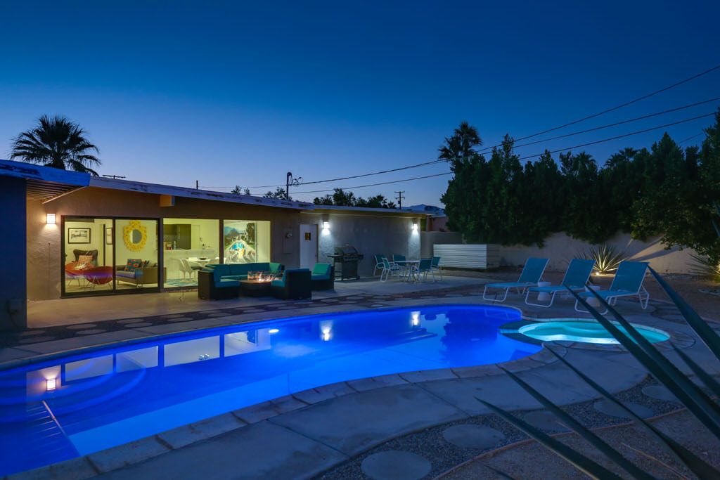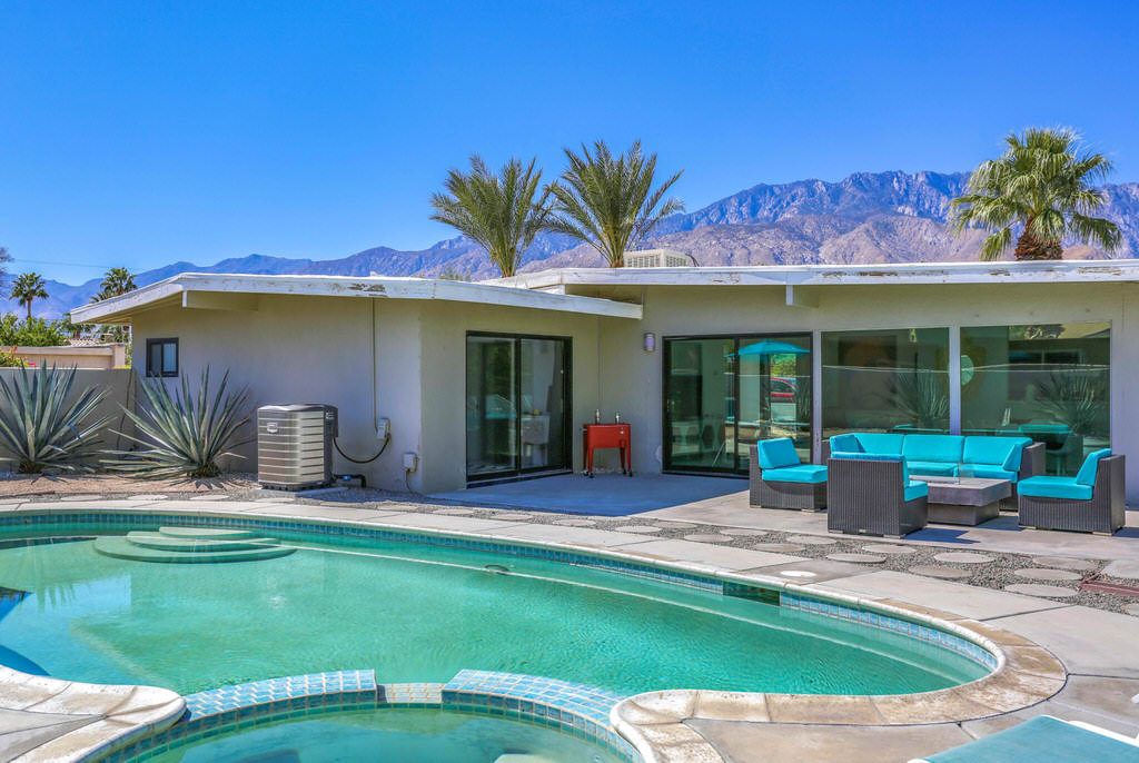 This Palm Spring mid century modern vacation home for rent is all about Modern Living. Enjoy this newly available mid-century modern vacation home in the Desert Park Estates area of Palm Springs.