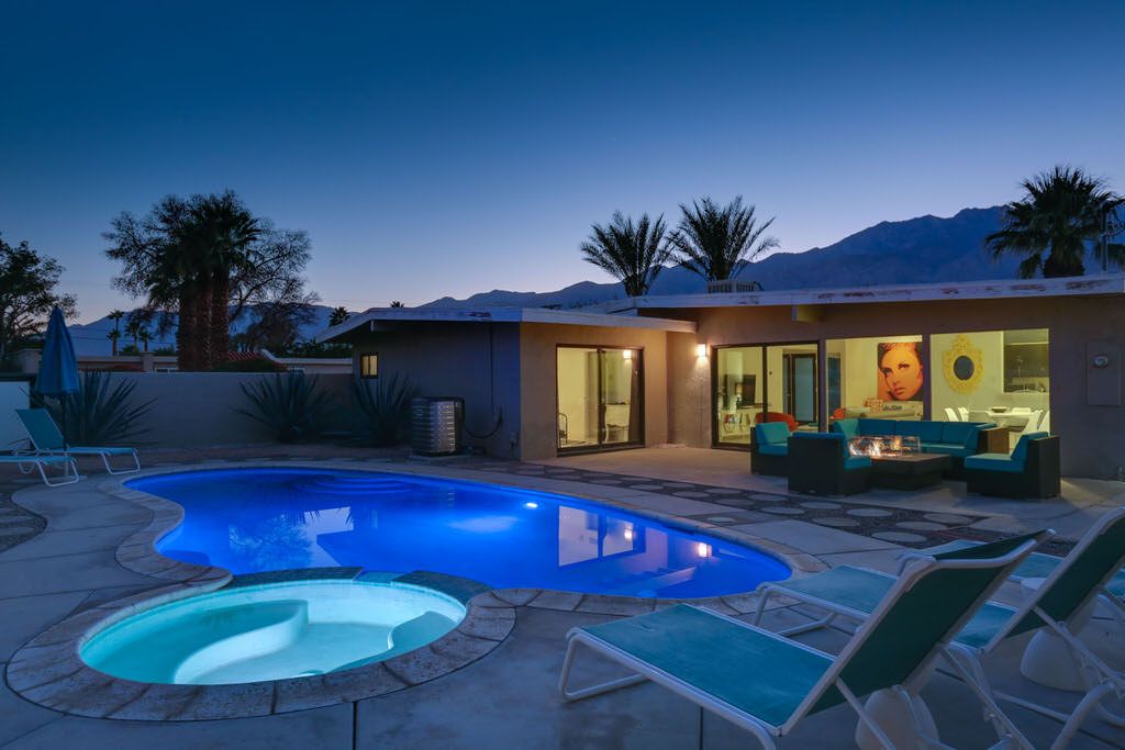 This mid century modern Palm Springs vacation home offers the perfect blend of indoor/outdoor living. Take full advantage of Palm Springs' year-round sunshine in this stylish and comfortable home. You'll find this mid-century modern Palm Springs home a great vacation rental. Sun-filled, open spaces, large pool for swimming and sunning - plus outstanding mountain views.