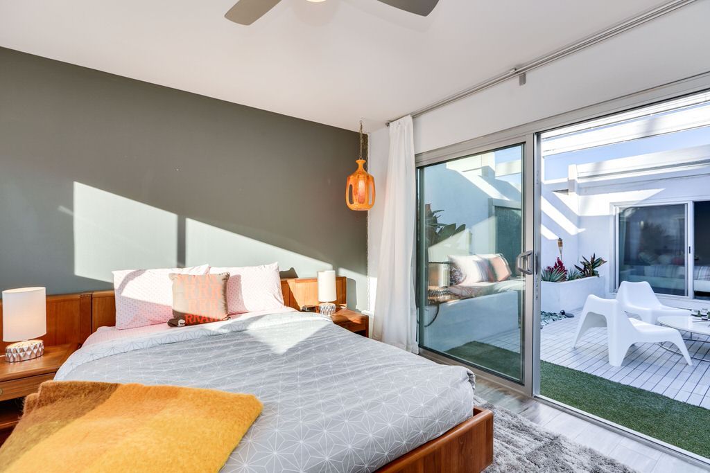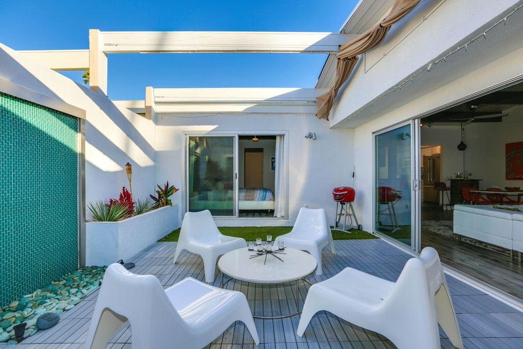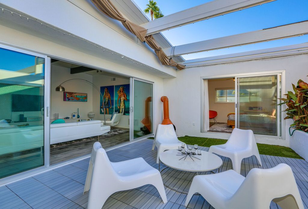 Your floating interior courtyard can be doubled up and make it into another outdoor living area. An electric BBQ grill allows you and your guests to enjoy preparing meals and dining alfresco in the reliable Palm Springs weather.