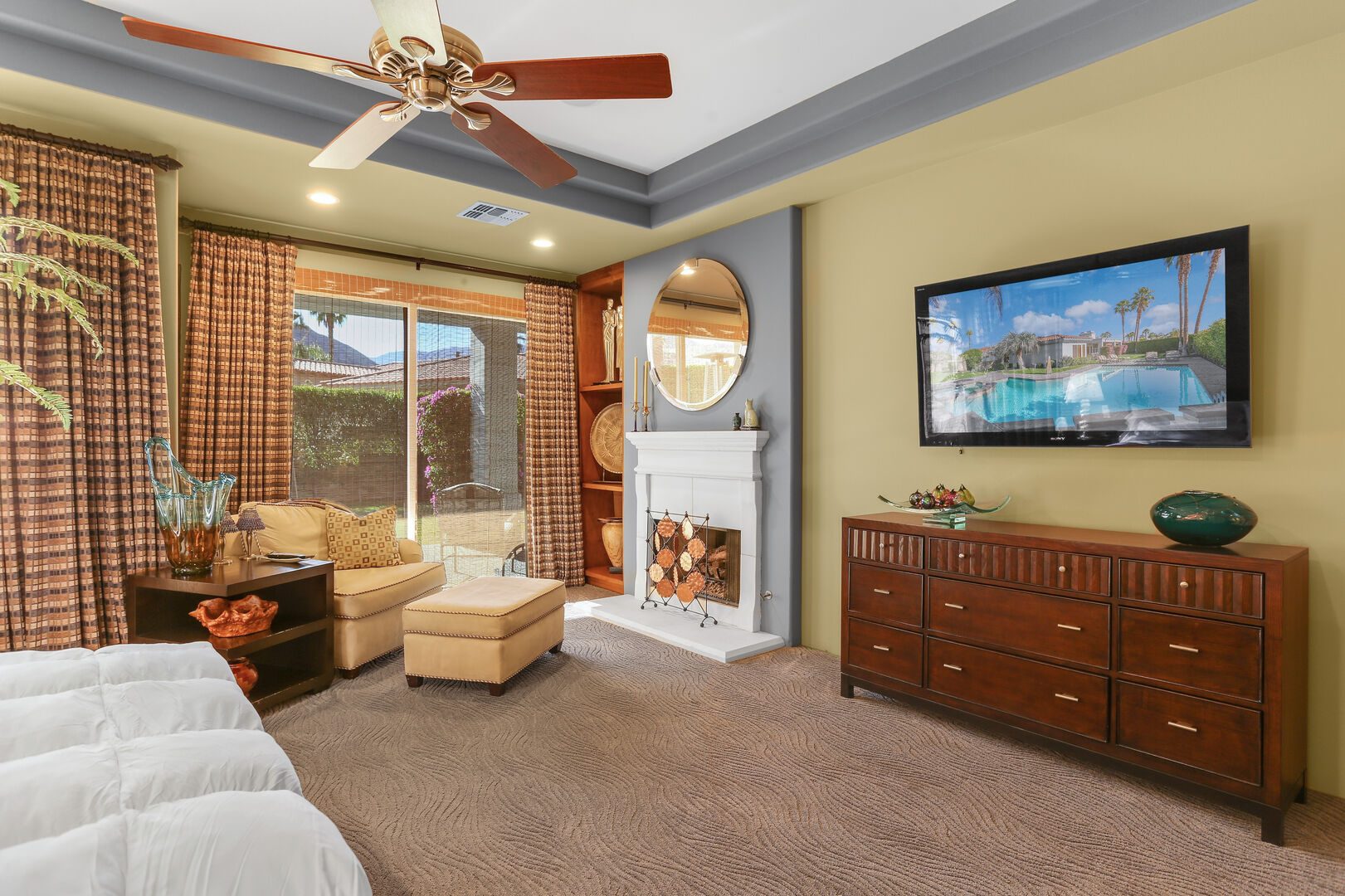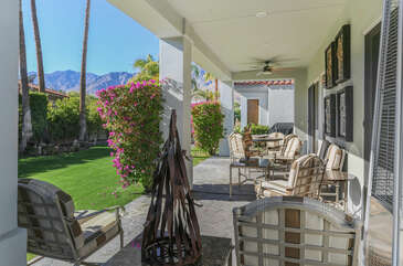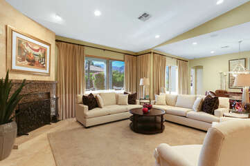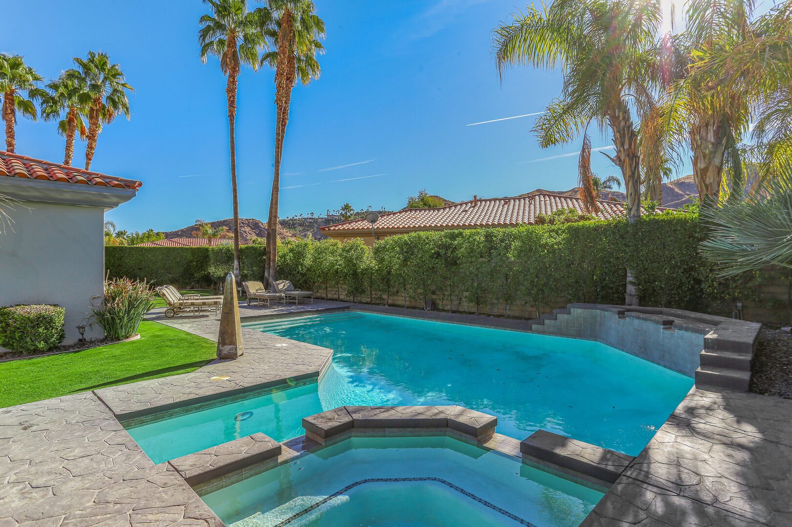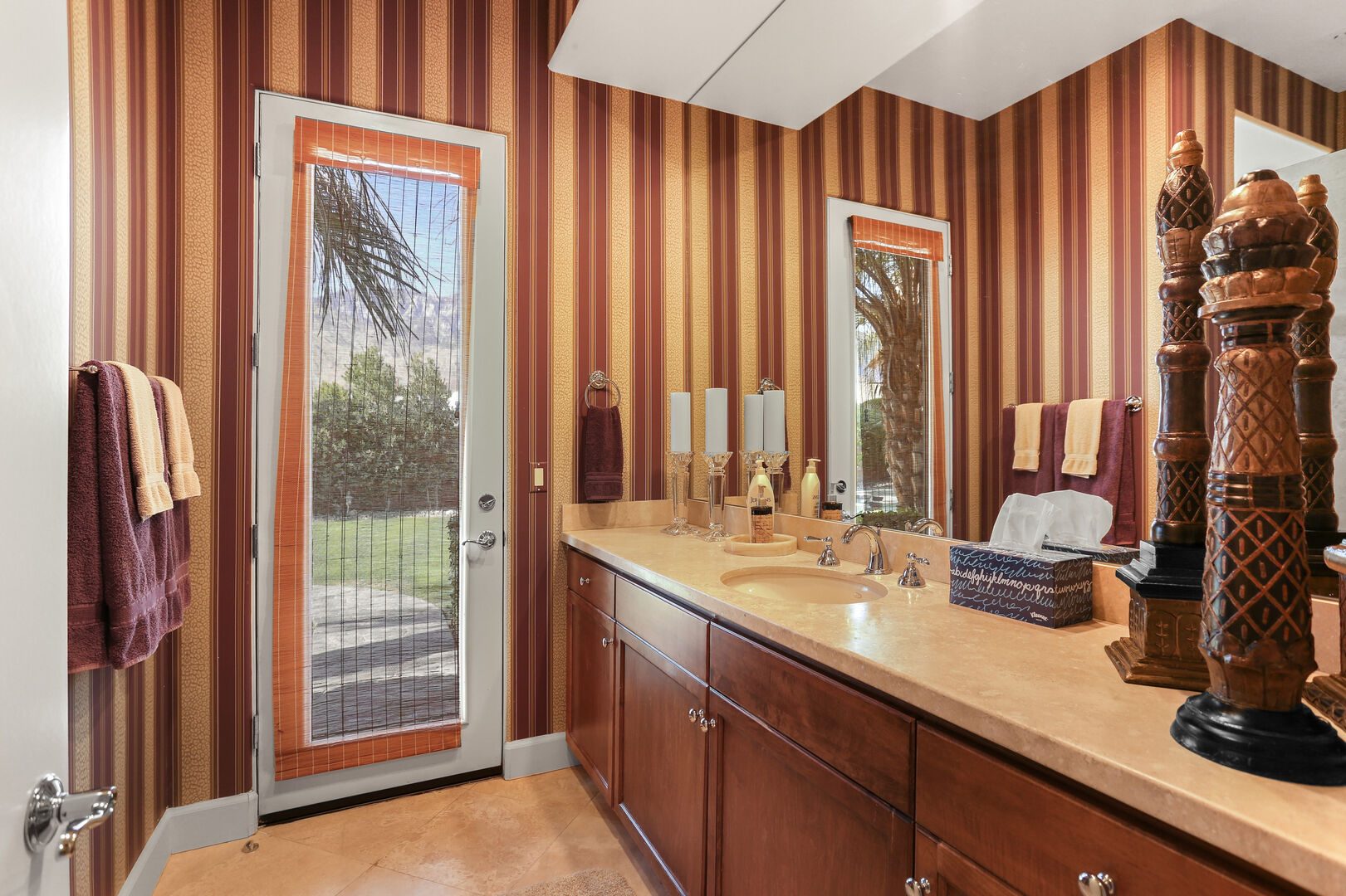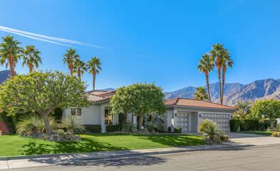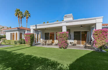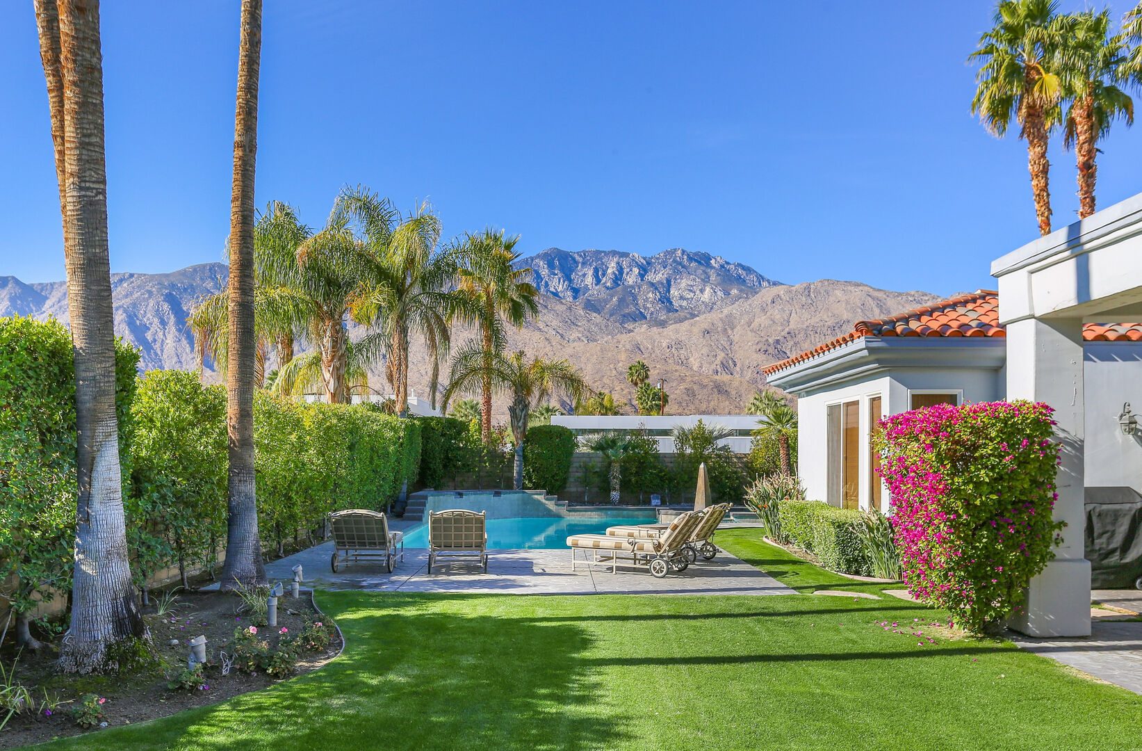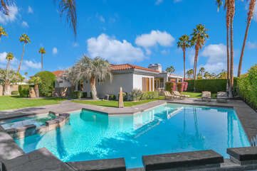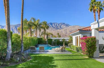 Welcome to Villa Sanorita This 4-bedroom, 4-bathroom, 3,052 square foot custom home on a 13k+ sq. ft. lot built in 2001, allows you to make your dreams come true when imagining a vacation home, away from home. Located in South Palm Springs, with 10-to-14-foot ceilings throughout, it does not just seem ginormous, but it actually is. Walking up the meticulously manicured pathway, you are greeted by the inviting exterior foyer, shielding extreme weather. Upon entering the extravagantly illuminated vestibule, one’s eyes are led upwards to the spacious vaulted ceilings of the open living concept which includes the large family living/dining areas, bar and Chef’s kitchen. In the family living/dining area, there are oodles of comfy seating for family and friends as you binge watch favorite Netflix shows on an 80” TV or play games (located in the living room cabinet). Enjoy conversing or sit back, relax, and enjoy the spectacular mountain views through walls of glass. There is a stunning gas log fireplace in the living room for all to enjoy.There are lots of dining seating options! The breakfast dining area seats 6 at the table with 4 chairs at the kitchen bar, a formal dining room with stunning cove ceilings and custom upholstered walls that seat 8. Out back on the loggia, there is another table that seats 4 for “al fresco” or “wet bathing suit” dining!The kitchen is made for preparing and sharing sumptuous meals together. With all granite surfaces and backsplash, a 6-burner commercial cook top, 2 convection ovens, a convection microwave, and a 2 door 48” refrigerator with ice maker in the door; the options will be endless. Be assured, there is enough cookware, dishes, drink ware, and flatware for 22 seated (including bar). There is also a large capacity dishwasher, which relieves the minds of those helping to clean up after those delectable meals. There are cool Travertine floors in the living areas with a large custom rug, to complete that “homey” feel of this special property.Now for the bedrooms, all of which have 650 thread count cotton bedding and bath linens. The Master Suite is jaw-droppingly beautiful! The double-door entrance has you waiting with anticipation for what comes next and you will not be disappointed. The King-sized bed, steep ceilings, custom paint, a 55-inch TV with full movie channels, and a fireplace with gas logs. Wait until you step into the enveloping master bath suite with a dressing area, dual sinks, a large, sparkling shower, and an enormous spa tub. It is everything!There are two other guest bedroom suites in the main house, both with King-sized beds. It works out perfectly when everyone gets their own bathroom. They also have their own TV’s with full movie channels- one is a 40-inch and the other is a 45-inch. All rooms throughout the house have custom window coverings, blackout draperies, bamboo shades and ceiling fans. Most bedrooms have mountain views. All bathrooms have custom made wallpapers which add to the warmth of the space.The structure is all on one level, the guest house has a separate entrance, attached to the main house however, but not accessible from inside the main house. The guest house has a Queen-sized bed, a 40” TV with all the movie channels, a mini fridge, a microwave, a breakfast nook, and a full bath with shower/tub combo. The large back yard is very private with high hedges. There is a large custom built “L” shaped pool that is 8 feet deep with a waterfall and a built-in Jacuzzi that both overflow into the pool. The loggia has the outdoor seating for 4, an additional love seat and 4 club chairs with granite side tables. The pool patio has 4 chaise lounges, and all outdoor hard surfaces are made of stamped concrete in a rock pattern. There are amazing mountain views from all backyard areas and plenty of grass, to enjoy family together time. All completely walled and gated.For your grilling needs, there is a propane gas, bar-b-que grill on the patio and a propane gas, outdoor heater for those cooler evenings. This property is nestled near the south end mountain ranges. The large driveway has space for 3 oversized vehicles. The maximum number of cars allowed at this property at any time is 4. Entry and exit can be done through the garage, however there are personal vehicles parked inside. There is an extra refrigerator in the garage with 2 ice makers to help minimize the number of trips needed for grocery shopping. Come and stay, get ready to delight all your senses. Your entire family and friends will want to create unforgettable memories at this unique home. Please, make your reservation today!Sorry, No Pets AllowedProperty Details:Built in 2001Approximately 3052 Square FeetLocated in Palm Springs5 TVs in the house:Netflix in Living Room OnlyPropane BBQ2 Fireplaces in house:Gas Logs in Master and Living RoomPrivate PoolJetted Hot TubLG Large Capacity Washer and DryerWi-FiLocal Phone Calls OnlyChildren OkSorry, No Pets Allowed3 Night Minimum1 Space Available in Garage, Owner keeps two cars permanently in the other two spacesOptional Pool & Spa Heating Available for an Additional CostTOT Permit #4004City ID # 4595 Room Configuration:Master: King + Flat Screen TV w/Cable only, all movie channelsGuest 1: King + Flat Screen TV w/Cable only. all movie channelsGuest 2: King + Flat Screen TV w/Cable only, all movie channelsGuest House Room: Queen + Flat Screen TV w/Cable only, all movie channels Bathroom Configuration:Master Bathroom: Shower and TubEnsuite Guest Bathroom 1: Shower Ensuite Guest Bathroom 2: Shower/Tub ComboEnsuite Guest House Bathroom: Shower/Tub ComboSorry, No Pets Allowed