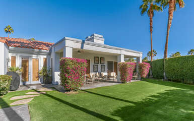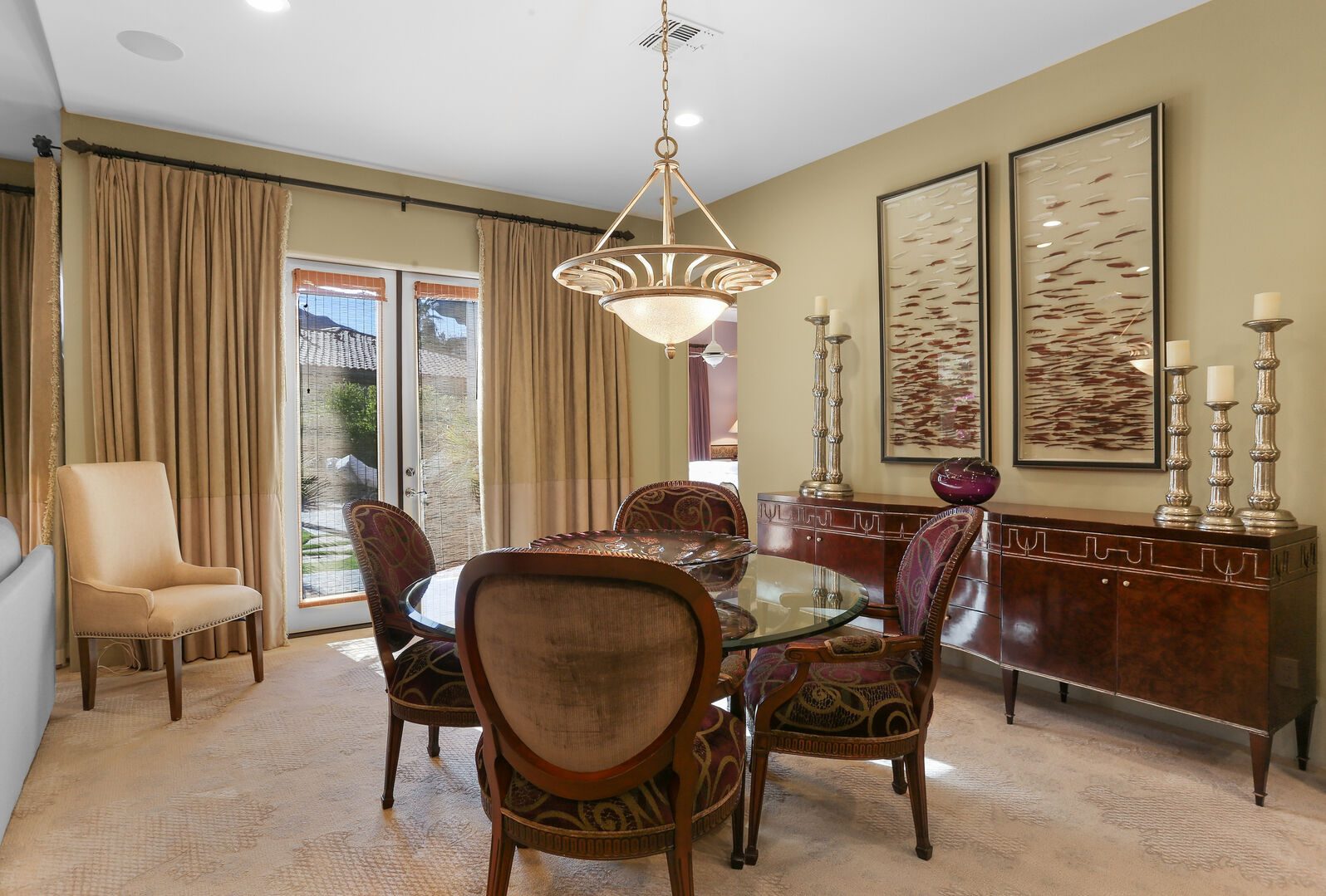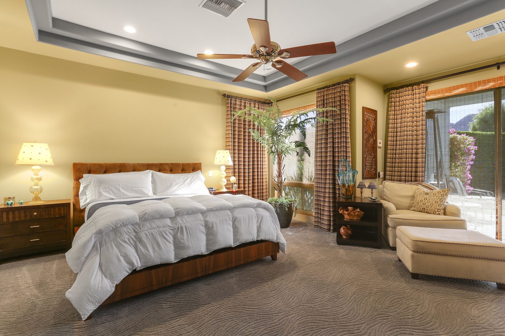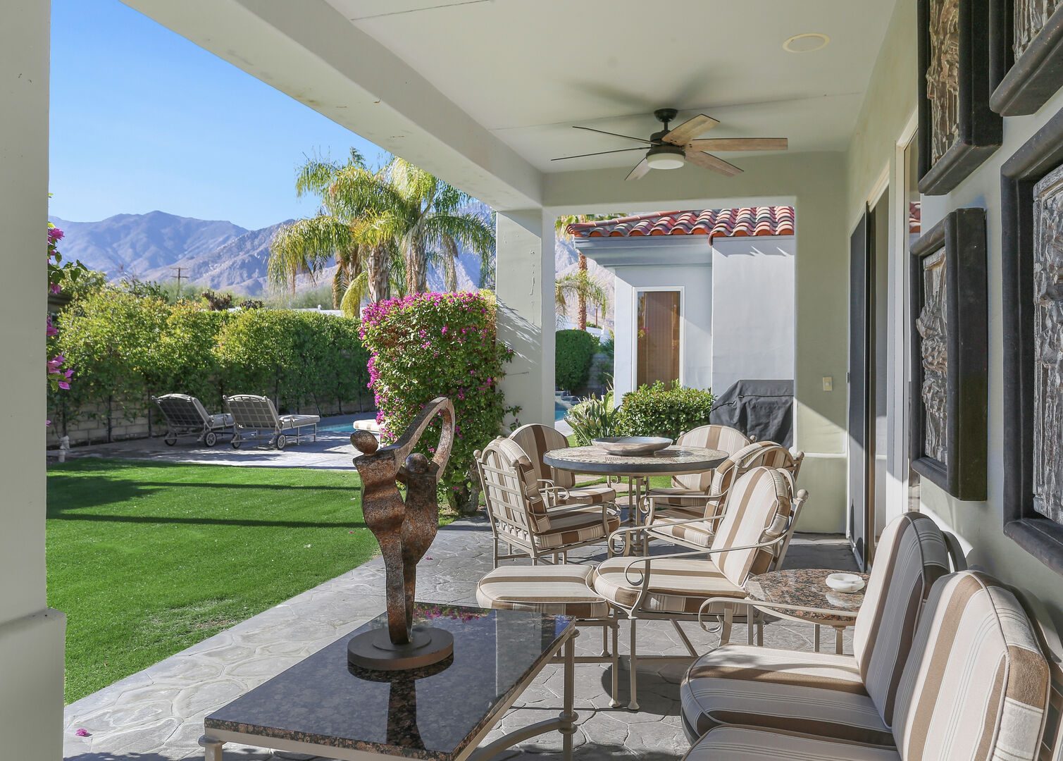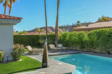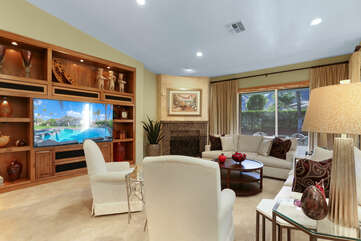 Welcome to Villa Sanorita This 4-bedroom, 4-bathroom, 3,052 square foot custom home on a 13k+ sq. ft. lot built in 2001, allows you to make your dreams come true when imagining a vacation home, away from home. Located in South Palm Springs, with 10-to-14-foot ceilings throughout, it does not just seem ginormous, but it actually is. Walking up the meticulously manicured pathway, you are greeted by the inviting exterior foyer, shielding extreme weather. Upon entering the extravagantly illuminated vestibule, one’s eyes are led upwards to the spacious vaulted ceilings of the open living concept which includes the large family living/dining areas, bar and Chef’s kitchen. In the family living/dining area, there are oodles of comfy seating for family and friends as you binge watch favorite Netflix shows on an 80” TV or play games (located in the living room cabinet). Enjoy conversing or sit back, relax, and enjoy the spectacular mountain views through walls of glass. There is a stunning gas log fireplace in the living room for all to enjoy.There are lots of dining seating options! The breakfast dining area seats 6 at the table with 4 chairs at the kitchen bar, a formal dining room with stunning cove ceilings and custom upholstered walls that seat 8. Out back on the loggia, there is another table that seats 4 for “al fresco” or “wet bathing suit” dining!The kitchen is made for preparing and sharing sumptuous meals together. With all granite surfaces and backsplash, a 6-burner commercial cook top, 2 convection ovens, a convection microwave, and a 2 door 48” refrigerator with ice maker in the door; the options will be endless. Be assured, there is enough cookware, dishes, drink ware, and flatware for 22 seated (including bar). There is also a large capacity dishwasher, which relieves the minds of those helping to clean up after those delectable meals. There are cool Travertine floors in the living areas with a large custom rug, to complete that “homey” feel of this special property.Now for the bedrooms, all of which have 650 thread count cotton bedding and bath linens. The Master Suite is jaw-droppingly beautiful! The double-door entrance has you waiting with anticipation for what comes next and you will not be disappointed. The King-sized bed, steep ceilings, custom paint, a 55-inch TV with full movie channels, and a fireplace with gas logs. Wait until you step into the enveloping master bath suite with a dressing area, dual sinks, a large, sparkling shower, and an enormous spa tub. It is everything!There are two other guest bedroom suites in the main house, both with King-sized beds. It works out perfectly when everyone gets their own bathroom. They also have their own TV’s with full movie channels- one is a 40-inch and the other is a 45-inch. All rooms throughout the house have custom window coverings, blackout draperies, bamboo shades and ceiling fans. Most bedrooms have mountain views. All bathrooms have custom made wallpapers which add to the warmth of the space.The structure is all on one level, the guest house has a separate entrance, attached to the main house however, but not accessible from inside the main house. The guest house has a Queen-sized bed, a 40” TV with all the movie channels, a mini fridge, a microwave, a breakfast nook, and a full bath with shower/tub combo. The large back yard is very private with high hedges. There is a large custom built “L” shaped pool that is 8 feet deep with a waterfall and a built-in Jacuzzi that both overflow into the pool. The loggia has the outdoor seating for 4, an additional love seat and 4 club chairs with granite side tables. The pool patio has 4 chaise lounges, and all outdoor hard surfaces are made of stamped concrete in a rock pattern. There are amazing mountain views from all backyard areas and plenty of grass, to enjoy family together time. All completely walled and gated.For your grilling needs, there is a propane gas, bar-b-que grill on the patio and a propane gas, outdoor heater for those cooler evenings. This property is nestled near the south end mountain ranges. The large driveway has space for 3 oversized vehicles. The maximum number of cars allowed at this property at any time is 4. Entry and exit can be done through the garage, however there are personal vehicles parked inside. There is an extra refrigerator in the garage with 2 ice makers to help minimize the number of trips needed for grocery shopping. Come and stay, get ready to delight all your senses. Your entire family and friends will want to create unforgettable memories at this unique home. Please, make your reservation today!Sorry, No Pets AllowedProperty Details:Built in 2001Approximately 3052 Square FeetLocated in Palm Springs5 TVs in the house:Netflix in Living Room OnlyPropane BBQ2 Fireplaces in house:Gas Logs in Master and Living RoomPrivate PoolJetted Hot TubLG Large Capacity Washer and DryerWi-FiLocal Phone Calls OnlyChildren OkSorry, No Pets Allowed3 Night Minimum1 Space Available in Garage, Owner keeps two cars permanently in the other two spacesOptional Pool & Spa Heating Available for an Additional CostTOT Permit #4004City ID # 4595 Room Configuration:Master: King + Flat Screen TV w/Cable only, all movie channelsGuest 1: King + Flat Screen TV w/Cable only. all movie channelsGuest 2: King + Flat Screen TV w/Cable only, all movie channelsGuest House Room: Queen + Flat Screen TV w/Cable only, all movie channels Bathroom Configuration:Master Bathroom: Shower and TubEnsuite Guest Bathroom 1: Shower Ensuite Guest Bathroom 2: Shower/Tub ComboEnsuite Guest House Bathroom: Shower/Tub ComboSorry, No Pets Allowed