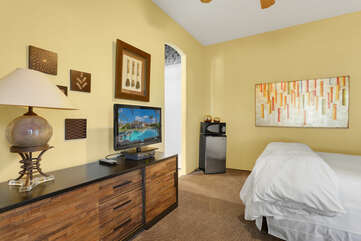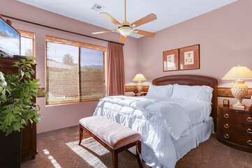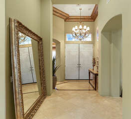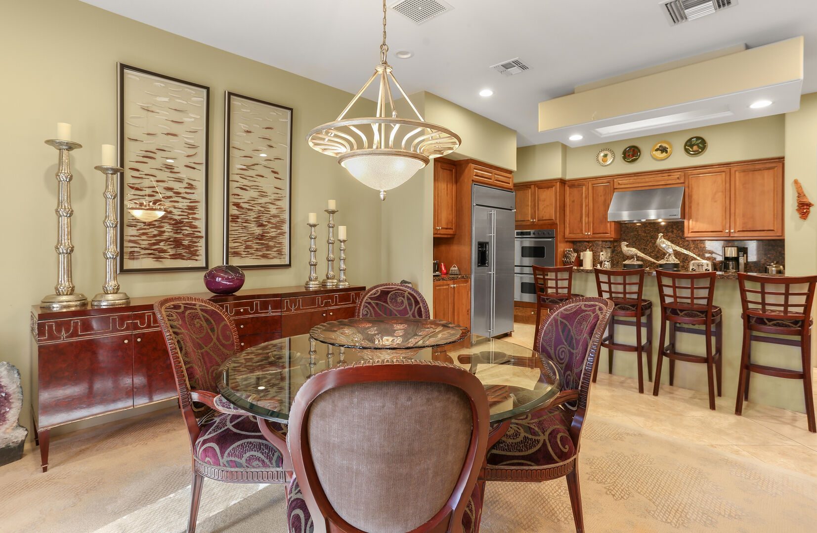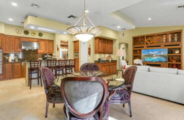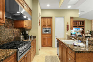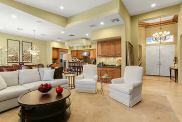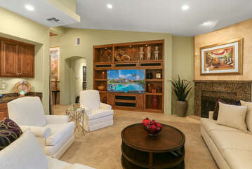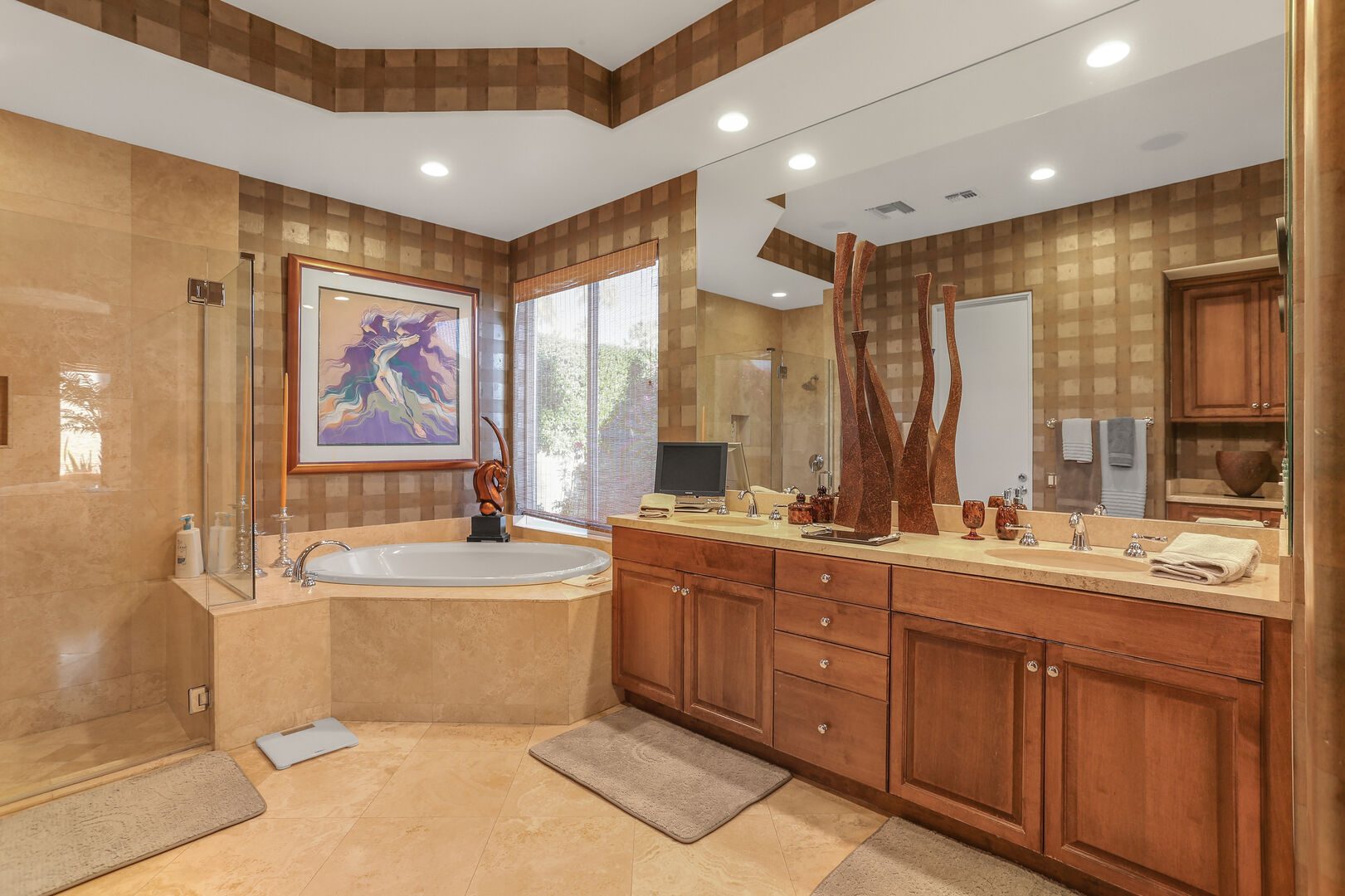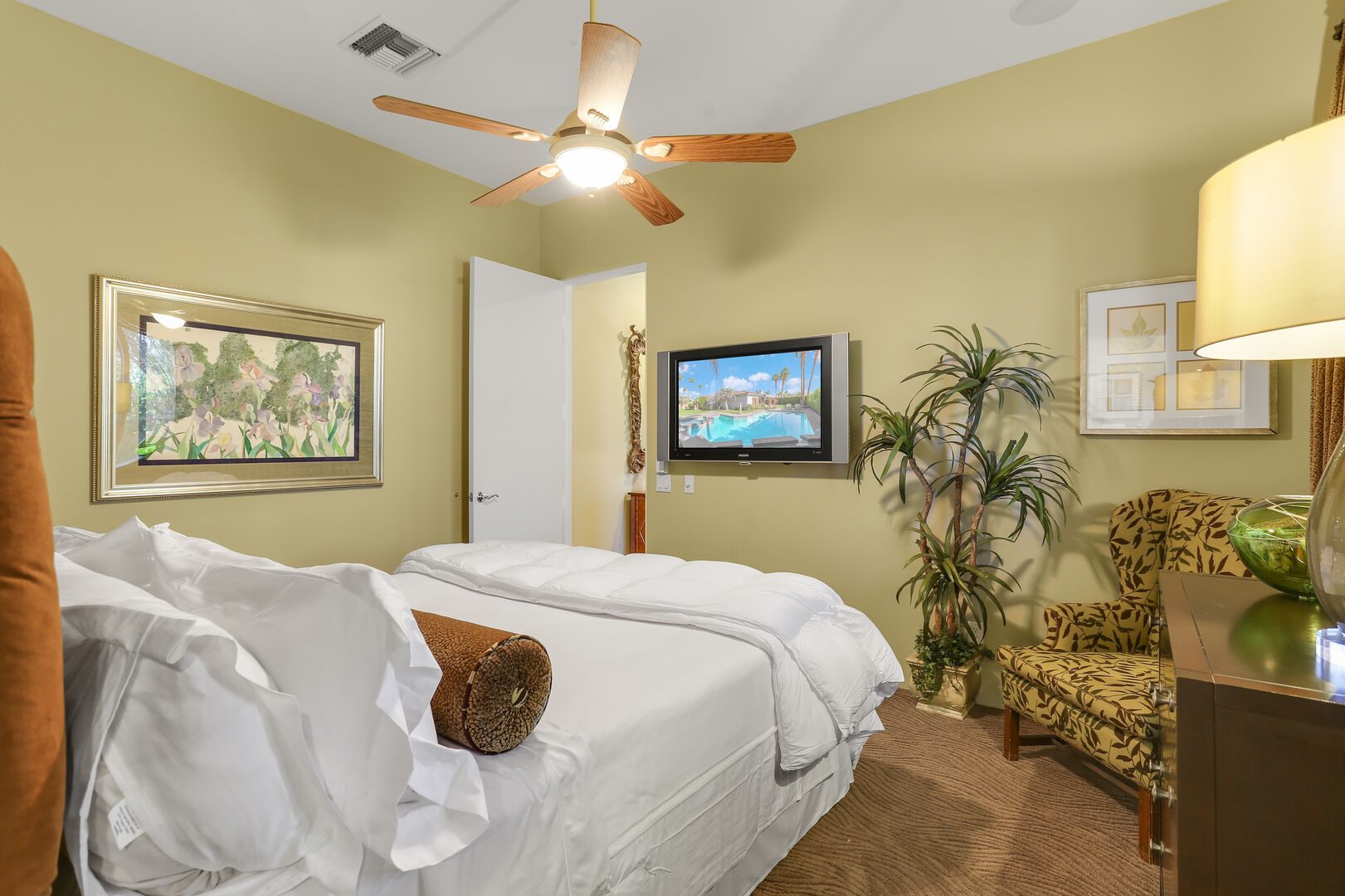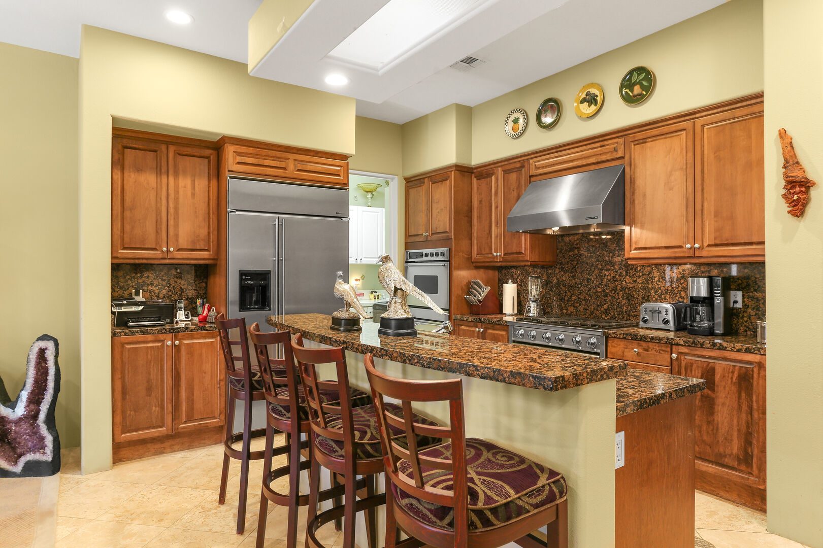 Welcome to Villa Sanorita This 4-bedroom, 4-bathroom, 3,052 square foot custom home on a 13k+ sq. ft. lot built in 2001, allows you to make your dreams come true when imagining a vacation home, away from home. Located in South Palm Springs, with 10-to-14-foot ceilings throughout, it does not just seem ginormous, but it actually is. Walking up the meticulously manicured pathway, you are greeted by the inviting exterior foyer, shielding extreme weather. Upon entering the extravagantly illuminated vestibule, one’s eyes are led upwards to the spacious vaulted ceilings of the open living concept which includes the large family living/dining areas, bar and Chef’s kitchen. In the family living/dining area, there are oodles of comfy seating for family and friends as you binge watch favorite Netflix shows on an 80” TV or play games (located in the living room cabinet). Enjoy conversing or sit back, relax, and enjoy the spectacular mountain views through walls of glass. There is a stunning gas log fireplace in the living room for all to enjoy.There are lots of dining seating options! The breakfast dining area seats 6 at the table with 4 chairs at the kitchen bar, a formal dining room with stunning cove ceilings and custom upholstered walls that seat 8. Out back on the loggia, there is another table that seats 4 for “al fresco” or “wet bathing suit” dining!The kitchen is made for preparing and sharing sumptuous meals together. With all granite surfaces and backsplash, a 6-burner commercial cook top, 2 convection ovens, a convection microwave, and a 2 door 48” refrigerator with ice maker in the door; the options will be endless. Be assured, there is enough cookware, dishes, drink ware, and flatware for 22 seated (including bar). There is also a large capacity dishwasher, which relieves the minds of those helping to clean up after those delectable meals. There are cool Travertine floors in the living areas with a large custom rug, to complete that “homey” feel of this special property.Now for the bedrooms, all of which have 650 thread count cotton bedding and bath linens. The Master Suite is jaw-droppingly beautiful! The double-door entrance has you waiting with anticipation for what comes next and you will not be disappointed. The King-sized bed, steep ceilings, custom paint, a 55-inch TV with full movie channels, and a fireplace with gas logs. Wait until you step into the enveloping master bath suite with a dressing area, dual sinks, a large, sparkling shower, and an enormous spa tub. It is everything!There are two other guest bedroom suites in the main house, both with King-sized beds. It works out perfectly when everyone gets their own bathroom. They also have their own TV’s with full movie channels- one is a 40-inch and the other is a 45-inch. All rooms throughout the house have custom window coverings, blackout draperies, bamboo shades and ceiling fans. Most bedrooms have mountain views. All bathrooms have custom made wallpapers which add to the warmth of the space.The structure is all on one level, the guest house has a separate entrance, attached to the main house however, but not accessible from inside the main house. The guest house has a Queen-sized bed, a 40” TV with all the movie channels, a mini fridge, a microwave, a breakfast nook, and a full bath with shower/tub combo. The large back yard is very private with high hedges. There is a large custom built “L” shaped pool that is 8 feet deep with a waterfall and a built-in Jacuzzi that both overflow into the pool. The loggia has the outdoor seating for 4, an additional love seat and 4 club chairs with granite side tables. The pool patio has 4 chaise lounges, and all outdoor hard surfaces are made of stamped concrete in a rock pattern. There are amazing mountain views from all backyard areas and plenty of grass, to enjoy family together time. All completely walled and gated.For your grilling needs, there is a propane gas, bar-b-que grill on the patio and a propane gas, outdoor heater for those cooler evenings. This property is nestled near the south end mountain ranges. The large driveway has space for 3 oversized vehicles. The maximum number of cars allowed at this property at any time is 4. Entry and exit can be done through the garage, however there are personal vehicles parked inside. There is an extra refrigerator in the garage with 2 ice makers to help minimize the number of trips needed for grocery shopping. Come and stay, get ready to delight all your senses. Your entire family and friends will want to create unforgettable memories at this unique home. Please, make your reservation today!Sorry, No Pets AllowedProperty Details:Built in 2001Approximately 3052 Square FeetLocated in Palm Springs5 TVs in the house:Netflix in Living Room OnlyPropane BBQ2 Fireplaces in house:Gas Logs in Master and Living RoomPrivate PoolJetted Hot TubLG Large Capacity Washer and DryerWi-FiLocal Phone Calls OnlyChildren OkSorry, No Pets Allowed3 Night Minimum1 Space Available in Garage, Owner keeps two cars permanently in the other two spacesOptional Pool & Spa Heating Available for an Additional CostTOT Permit #4004City ID # 4595 Room Configuration:Master: King + Flat Screen TV w/Cable only, all movie channelsGuest 1: King + Flat Screen TV w/Cable only. all movie channelsGuest 2: King + Flat Screen TV w/Cable only, all movie channelsGuest House Room: Queen + Flat Screen TV w/Cable only, all movie channels Bathroom Configuration:Master Bathroom: Shower and TubEnsuite Guest Bathroom 1: Shower Ensuite Guest Bathroom 2: Shower/Tub ComboEnsuite Guest House Bathroom: Shower/Tub ComboSorry, No Pets Allowed