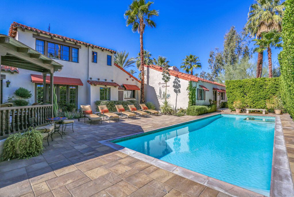 This Palm Springs Spanish style estate's layout makes it easy for multiple families to stay at one property while still enjoying their own privacy.
