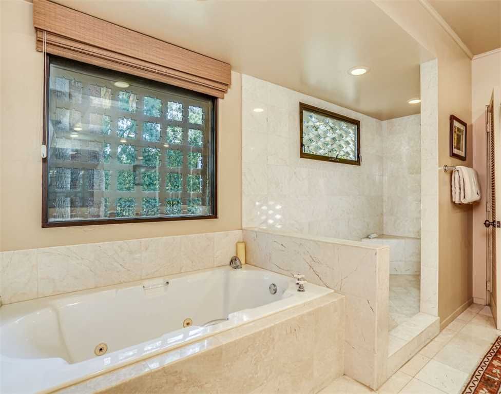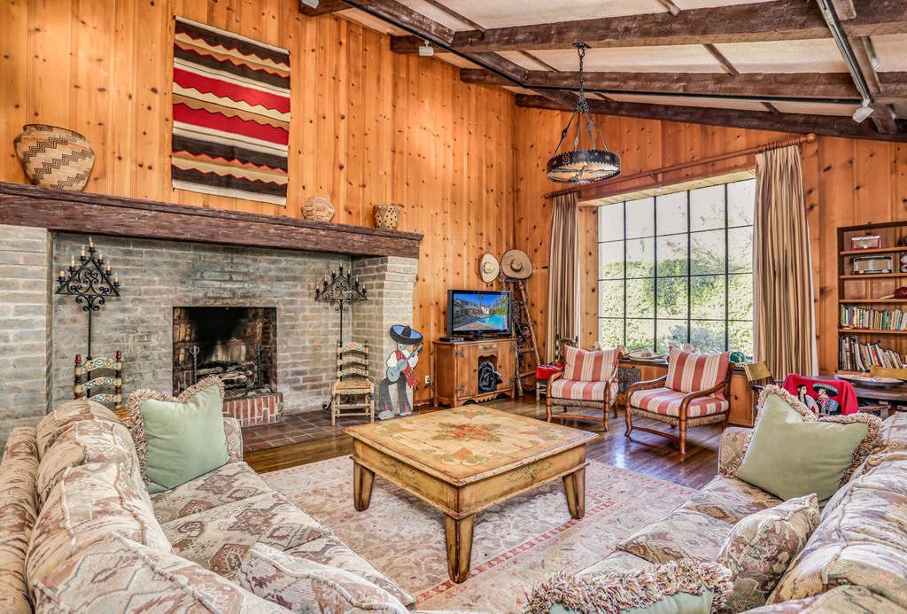 The entire estate is roofed with hand-made red clay roof tiles and is marked by the prodigious use of smooth plaster walls studded with native rock, chimney finishes and terracotta ornaments. The original casement windows and light fixtures still survive today in this beautiful home.